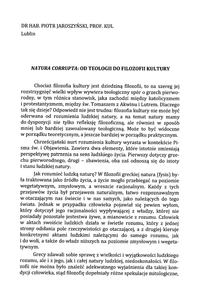 NATURA CORRUPTA: OD TEOLOGII DO FILOZOFII KULTURY