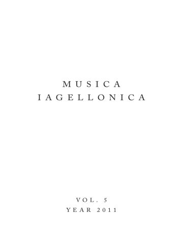 M U S I C A I A G E L L O N I C A VO L. 5 Y E A R 2011 MUSICA IAGELLONICA VOL. 5 YEAR 2011 EDITORIAL BOARD Aleksandra PATALAS (Assistant Editor) Zygmunt M. SZWEYKOWSKI (General Editor) Piotr WILK Andrzej SITARZ Publikacja ukazała się dzięki dofinanowaniu Uniwersytetu Jagiellońskiego The publication was sponsored by the Jagiellonian University in Kraków Copyright © by Musica Iagellonica, Kraków, Poland 2011 ISSN 1233-9679 Musica Iagellonica ul. Westerplatte 10 31-033 Kraków, Poland We invite you to visit our Internet bookstore at www.mi.pl Musica Iagellonica 2011 ISSN 1233-9679 CONTENTS Zygmunt M. SZWEYKOWSKI (Cracow) First attempts at the dramatic recitative: Jacopo Peri – Giulio Caccini . . . . . . . . . . . . . . . . . . . . . . . . . . . . 5 Aleksandra PATALAS (Cracow) The constructional and expressive role of modality in L’Euridice by Jacopo Peri and by Giulio Caccini . . . . . . . . . . . . . . . . . . 53 Aleksandra PATALAS (Cracow) In search of a mode of criticism. Cribrum musicum by Marco Scacchi and Censura by Filippo Kesperle . . . . . . . . . . . . . . . . . . . 73 Piotr WILK (Cracow) Form and style in Italian violin sonata of the 17th century . . . . 87 Piotr WILK (Cracow) The violin technique of Italian solo sonata in the 17th century . 163 Maciej JOCHYMCZYK (Cracow) The life and work of Father Damian Stachowicz . 209 Andrzej SITARZ (Cracow) Texture in piano compositions by Feliks Janiewicz: Study of Mazurek in A major and variations Hope Told a Flattering Tale . . . . . . . . . . . 259