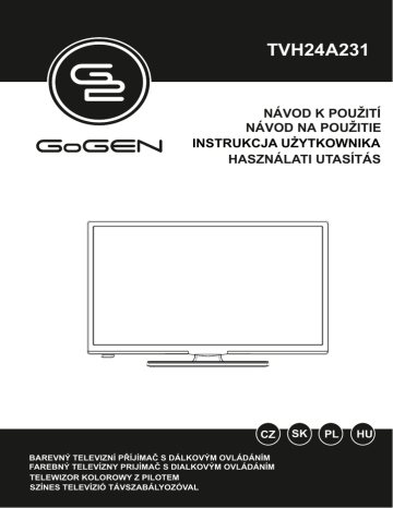TVH24A231 NÁVOD K POUŽITÍ NÁVOD NA POUŽITIE INSTRUKCJA UŻYTKOWNIKA HASZNÁLATI UTASÍTÁS CZ BAREVNÝ TELEVIZNÍ PŘÍJÍMAČ S DÁLKOVÝM OVLÁDÁNÍM FAREBNÝ TELEVÍZNY PRIJÍMAČ S DIALKOVÝM OVLÁDÁNÍM TELEWIZOR KOLOROWY Z PILOTEM SZÍNES TELEVÍZIÓ TÁVSZABÁLYOZÓVAL SK PL HU Obsah Bezpečnostní informace..........................................1 Začínáme................................................................3 Upozornění, funkce a příslušenství.........................3 Vlastnosti.................................................................3 Připojení napájení ..................................................4 Dálkové ovládání ....................................................5 Připojení..................................................................6 Menu Procházet média...........................................8 Menu Funkce a vlastnosti........................................9 Obsluha TV............................................................12 Ovládání seznamu kanálů.....................................12 Konfigurace Rodičovského nastavení...................12 Elektronický průvodce programy (EPG)................12 Aktualizace softwaru.............................................12 Řešení problémů a rady........................................13 PC vstup typické zobrazovací režimy . .................14 Podporované formáty souborů pro USB režim......14 Kompatibilita AV a HDMI ......................................14 Bezpečnostní informace VAROVÁNÍ Před zahájením instalace a používáním si prosím pečlivě přečtěte návod k použití. UPOZORNĚNÍ: Tento přístroj není určen pro použití osobami (včetně dětí) se sníženými fyzickými, smyslovými či duševními schopnostmi nebo osobami bez zkušeností a znalostí použití kromě těch, nad kterými je dohlíženo nebo kteří jsou naváděni osobou zodpovědnou za jejich bezpečnost. • Po všech stranách přístroje nechte nejméně 10 cm volného prostoru pro ventilaci. • Neblokujte větrací otvory. • Nepokládejte na nakloněné nebo vratké povrchy, TV může přepadnout. • Používejte toto zařízení v průměrných klimatických podmínkách. • Síťový kabel by měl být snadno přístupný. Na síťový kabel nepokládejte nábytek, TV nebo jiné věci. Poškozený síťový kabel může způsobit požár, nebo elektrický šok. Kabel odpojujte vytažením za zástrčku, nikoli zatažením za kabel. Nikdy nesahejte na síťový kabel mokrýma rukama, může to způsobit zkrat nebo elektrický šok. Nikdy kabel neuzlujte nebo nevažte s jinými kabely. Pokud je kabel poškozený musí být vyměněn kvalifikovanou osobou. Takovou TV nepoužívejte na vlhkém místě. Nevystavujte TV jakékoli kapalině. Pokud spadne nějaký předmět nebo kapalina na kryt, vypojte TV ze zásuvky, a před dalším použitím nechte zkontrolovat oprávněnou osobou. • Nevystavujte přímému slunečnímu svitu ani zdrojům tepla. NEBEZPEČÍ ŮRAZU ELEKTŘINOU NEOTEVÍRAT UPOZORNĚNÍ: PRO SNÍŽENÍ RIZIKA ŮRAZU ELEKTŘINOU NEODSTRAŇUJTE KRYT (NEBO ZADNÍ ČÁST) UVNITŘ PŘÍSTROJE SE NENACHÁZEJÍ ŽÁDNÉ DÍLY, KTERÉ SI MŮŽE UŽIVATEL SÁM OPRAVIT. PRO OPRAVU KONTAKTUJTE KVALIFIKOVANÝ SERVIS. Pro obsluhu vaší TV v extrémních podmínkách prostředí může způsobit poškození vašeho přístroje. TV vypojte z elektřiny v případě bouřky nebo pokud nebudete TV po delší dobu používat (dovolená). Síťová zástrčka slouží k odpojení TV ze sítě, a proto musí zůstat snadno přístupná. Symbol vykřičníku v rovnostranném trojúhelníku má za úkol upozornit uživatele zařízení na přítomnost důležitých informací o provozu a údržbě v dokumentaci, která je přiložena k zařízení. • Neumisťujte TV blízko otevřeného ohně a zdrojů tepla, jako třeba elektrické topení. • Nadměrná hladina zvuku ze sluchátek může způsobit ztrátu sluchu. • Ujistěte se, že žádné zdroje otevřeného ohně, jako třeba zapálené svíčky, neleží na povrchu TV. • Pokud chcete připevnit zařízení na stěnu, pro zabránění úrazu je nutno následovat montážní pokyny. • Někdy se může stát, že se na obrazovce objeví několik stálých pixelů v barvě modré, zelené nebo červené. Toto neovlivní výkon vašeho výrobku. Dbejte na to, abyste nepoškrábali obrazovku nehtem nebo jiným tvrdým předmětem. • Před čištěním odpojte přístroj z elektrické zásuvky ve zdi. Používejte měkký, suchý hadřík. Varování Poznámka : K obsluze souvisejících funkcí následujte pokyny na obrazovce. Nebezpečí zranění elektrickým proudem Upozornění: Důležité Upozornění! Čeština - 1 - Nebezpečí vážného poranění či smrti. Nebezpečí poranění vysokým napětím Nebezpečí zranění nebo poškození majetku Systém funguje správně Další poznámky Označení na Produktu Následující symboly jsou použity na produktu jako označení omezení, bezpečnostních opatření a bezpečnostních pokynů. Každé vysvětlení je platné pouze pro dané místo označené na produktu. Dbejte na tyto informace z bezpečnostních důvodů. Při spolknutí baterií hrozí nebezpečí chemického popálení (Baterie mohou být součástí balení výrobku). Produkt Třídy II: Tento spotřebič je navržen takovým způsobem, že nevyžaduje bezpečnostní elektrické uzemnění. Uchovávejte nové a použité baterie mimo dosah dětí. Produkt Třídy II s funkčním uzemněním: Tento spotřebič je navržen takovým způsobem, že nevyžaduje bezpečnostní elektrické uzemnění, toto uzemnění je použito pro funkční účely. VAROVÁNÍ Tento výrobek může obsahovat knoflíkové baterie. Spolknutí knoflíkové baterie, může způsobit vážné vnitřní popáleniny během 2 hodin a to může vést ke smrti. Pokud není možné bezpe