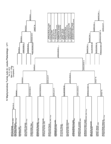 KNYZA D. KJ Politechniki Białostockiej, 2003, 5 kyu SRZEDZIŃSKI Mateusz HKS Żubr Hajnówka, 2004, GINSZT Michał UKJ Kobra Wa-wa, BIELECKI Aleksander SDIUSHOR no4 GRODNO BIAŁORUŚ, 2004, 6 kyu DERENGOVSKIY Danik KJ Politechniki Białostockiej, 2003, BABIŃCZUK Jonatan JC ALYTIS ALYTUS LITWA, 2004, JANKAUSKAS Arvydas MKS Żak Ełk, 2003, 6 kyu KUŁAKOWSKI Mateusz KJ Lemur Wa-wa, 2004, RYCHCIK Maciej VDSK PELEDA LITWA, KIRIESEVAS Kimuydas KJ Politechniki Białostockiej, 2003, 4 kyu BORCUCH Patryk KS Minotaur Wys-Maz, 2003, MAKSYMOWICZ Dominik MULKS Technik-Orion Radz. Podl., KRASUCKI Szymon KJ Politechniki Białostockiej, PAŃKOWSKI Staś HKS Żubr Hajnówka, 2004, 5 kyu GOLONKO Damian Team Ukraine Luck, Kolinthyk IRIY UKS Spartakus Lublin, 2003, 5 kyu PIETRAS Mateusz JC ALYTIS ALYTUS LITWA, 2003, KNYZA Domas GINSZT M. DERENGOVSKIY D. JANKAUSKAS A. KUŁAKOWSKI M. BORCUCH P. MAKSYMOWICZ D. PAŃKOWSKI S. Kolinthyk I. GINSZT M. JANKAUSKAS A. BORCUCH P. Kolinthyk I. JANKAUSKAS A. Kolinthyk I. Competitors: 17 Men U11 -37kg Oct 12, 2013 KNYZA D. JC ALYTIS ALYTUS LITWA VDSK PELEDA LITWA KNYZA D. BABIŃCZUK J. BABIŃCZUK J. BORCUCH P. BABIŃCZUK J. SDIUSHOR no4 GRODNO BIAŁORUŚ 7 DERENGOVSKIY Danik 7 KIRIESEVAS Kimuydas KJ Politechniki Białostockiej 5 BORCUCH Patryk HKS Żubr Hajnówka 5 GINSZT Michał KJ Politechniki Białostockiej 3 BABIŃCZUK Jonatan DERENGOVSKIY D. DERENGOVSKIY D. SRZEDZIŃSKI M. KUŁAKOWSKI M. BABIŃCZUK J. JANKAUSKAS A. 3 KNYZA Domas Team Ukraine Luck 2 Kolinthyk IRIY JC ALYTIS ALYTUS LITWA GINSZT M. KNYZA D. 1 JANKAUSKAS Arvydas MAKSYMOWICZ D. KIRIESEVAS K. KIRIESEVAS K. PAŃKOWSKI S. KNYZA D. IV Międzynarodowy Turniej Judo im. Leszka Piekarskiego - U11