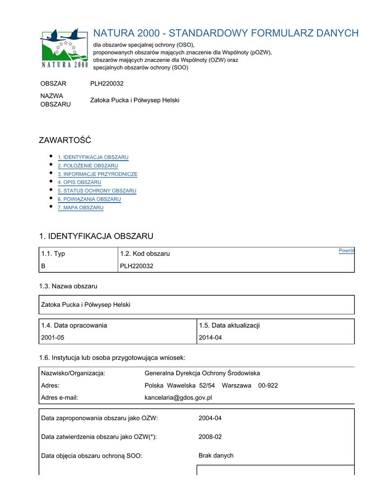 NATURA 2000 - STANDARDOWY FORMULARZ DANYCH