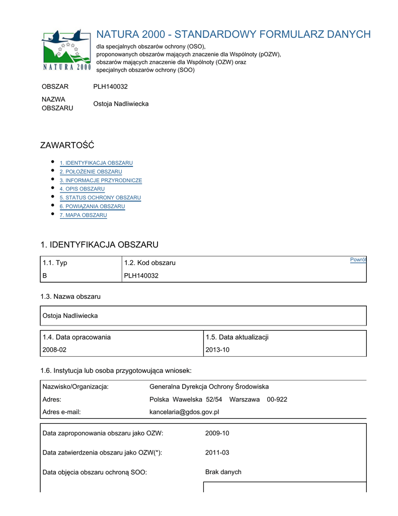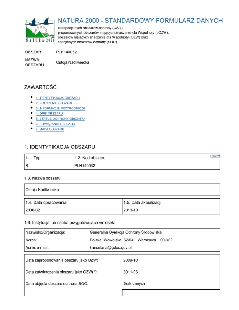 NATURA 2000 - STANDARDOWY FORMULARZ DANYCH
