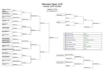 Warsaw Open U15 Warsaw, 26-27.09.2009 Cistiakovas Pavelas Liepaja Lota Tomasz OZJ Łódź Hatliński Łukasz UKS Orkan Sochaczew Dauksevicius Povilas Alytis Kowalewski Jakub UKJ "Ryś" Mattson Emil Stockholm ZARAŚ KACPER UKJ 225 Warszawa Kuba Wasilewski BKS YAWARA Zhukov German Satori WITALEC KAMIL "WALTER" RZESZÓW Matuszak Krzysztof MOSIR MYSŁOWICE Sokolovskis Arurs Liepaja Lota T. MOSIR STALOWA WOLA ADAMUS MARCIN UKJ 225 Warszawa Nenartavicius Rokas Alytis Kovalskiy Taras Volyn judo Kowalewski J. Dauksevicius P. Kowalewski J. Lota T. Dauksevicius P. Lota T. Dauksevicius P. Lota T. Kowalewski J. Kuba W. Zhukov G. Kuba W. Kuba W. Mattson E. Sokolovskis A. ZARAŚ K. ZARAŚ K. Sokolovskis A. ZARAŚ K. Zhukov G. Kuba W. Zhukov G. Zhukov G. Zhukov G. WITALEC K. GŁOWACKI M. GŁOWACKI M. Sokolovskis A. Sokolovskis A. MATLAKOWSKI ARKADIUSZ UKS Galeon MATLAKOWSKI A. Majgier Robert no. of competitors: 18 Hatliński Ł. Akademia Judo K.S. GŁOWACKI MICHAŁ category: 73 kg. Lota T. Sokolovskis A. 1 Zhukov German Satori 2 Kovalskiy Taras Volyn judo 3 Sokolovskis Arurs Liepaja 3 GŁOWACKI MICHAŁ MOSIR MYSŁOWICE 5 Lota Tomasz OZJ Łódź 5 Dauksevicius Povilas Alytis 7 Kuba Wasilewski BKS YAWARA 7 Nenartavicius Rokas Alytis Kovalskiy T. Majgier R. Majgier R. MATLAKOWSKI A. MATLAKOWSKI A. GŁOWACKI M. ADAMUS M. GŁOWACKI M. Kovalskiy T. GŁOWACKI M. Nenartavicius R. Kovalskiy T. Nenartavicius R. Nenartavicius R. Nenartavicius R. Kovalskiy T. GŁOWACKI M. Majgier R. Dauksevicius P.