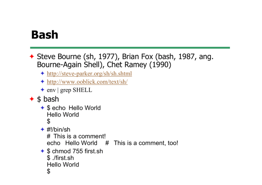 ✦ Steve Bourne (sh, 1977), Brian Fox (bash, 1987, ang.