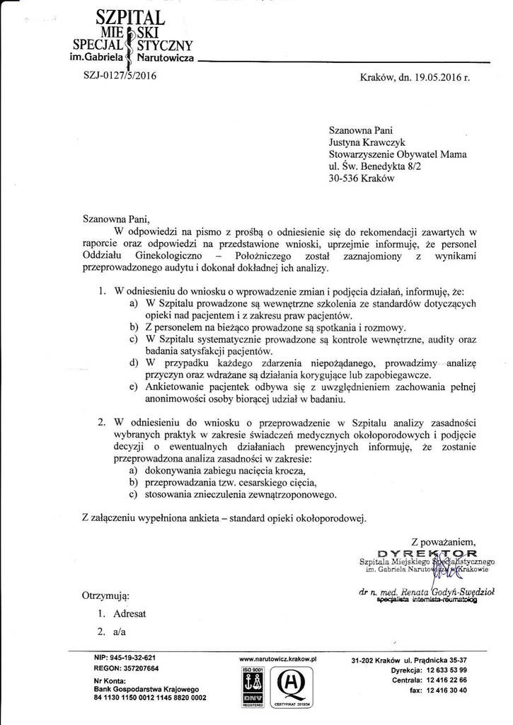 szpitalzamierza WproWadzić wewnętrzną ankietędla kobiet od