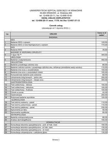 CENNIK USŁUG ( 278 kB ) - Uniwersytecki Szpital Dziecięcy w