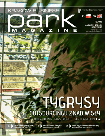 park KRAKÓW BUSINESS M A G A Z I N E PL EN 1/2015 MAGAZYN SPÓŁEK GRUPY KBP MAGAZINE OF THE KBP GROUP COMPANIES TYGRYSY OUTSOURCINGU ZNAD WISŁY OUTSOURCING TIGERS FROM THE VISTULA REGION 8 Dobra energia w KBP Good energy at KBP 10 Wszystko na miejscu All is where it should be 12 4 Stąd wyjdziesz uśmiechnięty You’ll leave this place smiling DLA NAS i O NAS Szanowni Państwo, z przyjemnością oddajemy w Państwa ręce pierwszy numer czasopisma dla Kraków Business Park. Nie bez przyczyny używamy tutaj słowa „dla”. Siłami całego zespołu redakcyjnego spróbowaliśmy stworzyć magazyn, który skomunikuje przestrzeń KBP – miejsca, gdzie każdy z nas znalazł przystanek w swoim życiu. Tutaj przede wszystkim pracujemy, ale też uczymy się, spędzamy chwile ze znajomymi, przyjaciółmi, tworzymy relacje i więzi. Tutaj zdobywamy i wykorzystujemy wiedzę oraz doświadczenie. W bieżącym numerze przeczytają Państwo między innymi o rozwoju usług outsourcingowych w Polsce, ze szczególnym naciskiem położonym na Kraków, gdzie dzięki ogromnemu potencjałowi ta branża szybko się rozwija. Poruszyliśmy też temat rozwoju infrastruktury lotniska w Balicach, które proponuje nową, zintegrowaną przestrzeń terminala i poszerzenie zakresu turystycznych destynacji. Próbując odpowiedzieć na pytanie, czy warto mieszkać w Krakowie, przytoczyliśmy również kilka faktów na temat krakowskiego rynku nieruchomości. Ważną część magazynu stanowi prezentacja Państwa działalności poza godzinami pracy. Tym razem firma UBS chciałaby pochwalić się autorskim musicalem, przygotowanym w całości przez jej pracowników. Musical gościł na deskach krakowskiego Teatru Ludowego, co pokazuje, z jakim rozmachem zrealizowano to przedsięwzięcie. Piszemy też o naszym klubie fitness, mieszczącym się w budynku KBP-1000, gdzie większość z nas aktywnie spędza czas przed pracą i po jej zakończeniu. Ponieważ nie samą pracą człowiek żyje, w numerze nie zabraknie informacji o wydarzeniach kulturalnych, które w najbliższym czasie odbędą się w Krakowie, a także kilku ciekawostek na temat zdrowia. Zaproponowaliśmy również konkurs związany z działalnością w przestrzeni społecznej Internetu. Mamy ogromną nadzieję, że magazyn przypadnie Państwu do gustu. Liczymy, że zaproponowane tematy zainspirują Państwa do współtworzenia kolejnych numerów. Chcielibyśmy, aby to czasopismo było dla nas i o nas, pracownikach Kraków Business Park. W imieniu zespołu redakcyjnego życzę udanej lektury. Marta Sobczyńska redaktor naczelna (Editor in Chief) KONKURS Piszesz bloga, prowadzisz vloga, a może angażujesz się w inną działalność społeczną? „Kraków Business Park Magazine” organizuje konkurs dla aktywnych w różnych dziedzinach. Chcemy Was poznać i pokazać innym, co robicie. Nagrodą będzie tekst o Waszej działalności na łamach magazynu i atrakcyjna nagroda rzeczowa! Na zgłoszenia i podstawowe informacje o Waszym projekcie czekamy do 15 listopada. Ślijcie je na adres: [email protected] COMPETITION Do you write a blog, record a vlog, or are you engaged in some other social activities? “Kraków Business Park Magazine” has organized a competition for people active in various fields. We want to get to know you and show others what you do. The prize will be an article on your activities published in the magazine and an attractive, valuable award! We are waiting for your applications and basic information on your project until 15th November. Send them to: [email protected] 2 PARK MAGAZINE For us and about us 4 Tygrysy outsourcingu znad Wisły Outsourcing tigers from the Vistula region 8 Dobra energia w KBP 10 Wszystko na miejscu 12 Stąd wyjdziesz uśmiechnięty Good energy at KBP Ladies and Gentlemen, We are pleased to present to you the first issue of the magazine for Kraków Business Park. We used the word “for” here for a reason. With the effort of the whole editorial team, we tried to create a magazine which will facilitate communication within KBP – the place where each of us feels at home. We mostly work here, but also learn, spend time with colleagues and friends, create relationships and bonds. Here we gather and apply knowledge and experience. In the current issue you will read, among others, about the development of outsourcing services in Poland, with the main focus on Kraków where, due to a great potential, this branch is developing quickly. We also wrote about the development of Balice airport’s infrastructure, which offers a new, integrated terminal space and a broader scope of tourist destinations. While trying to answer the question whether it is a good idea to live in Kraków, we gave you a couple of facts on the Kraków real estate market. An important part of the magazine is the presentation of your activities outside working hours. This time UBS wanted to boast about its own musical, entirely prepared by its employees. The musical was staged in Kraków’s Teatr Ludowy, which proves the project’s great momentum. We also presented our fitness club, located in the KBP-1000 building, where most of us actively spend time before and after work. Since work is not the only part of our life, this issue also includes information on cultural events offered in Kraków in the nearest future, as well as a couple of health tips. We also proposed a competition related to activities in the Internet’s social sphere. We really hope that you will like the magazine. We count on it that the proposed topic would inspire you to cooperate in the production of next issues. We would like this magazine to be for us and about us, the employees of the Kraków Business Park. On behalf of the editorial team, I wish you a pleasant reading. 16 All is where it should be You’ll leave this place smiling Strefa napędza Małopolskę The Zone drives the development of Małopolska 20 Nowy terminal w Balicach 24 Kraków do kochania czy mieszkania?