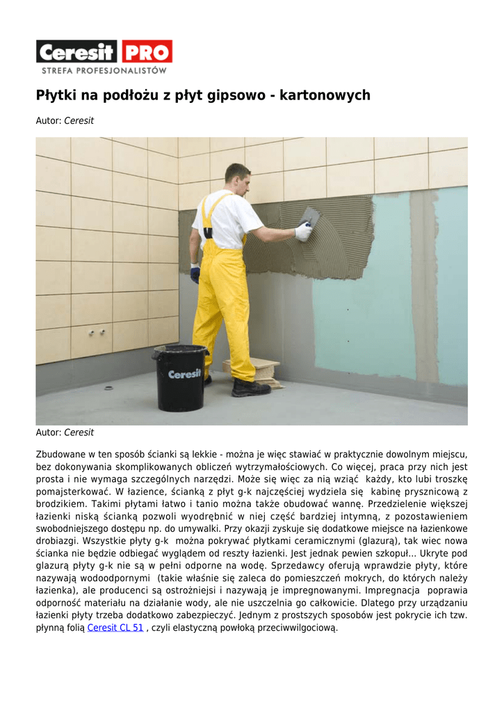 Płytki na podłożu z płyt gipsowo - kartonowych {APP