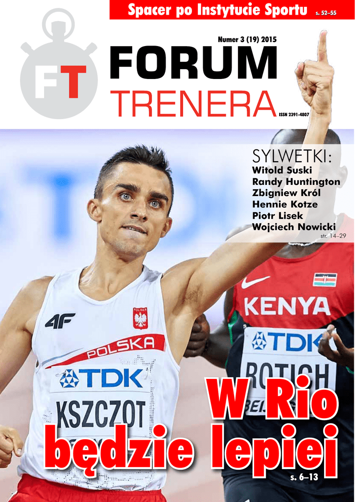 Spacer po Instytucie Sportu s. 52–55 Numer 3 (19) 2015 ISSN 2391-4807 sylwetki: Witold Suski Randy Huntington Zbigniew Król Hennie Kotze Piotr Lisek Wojciech Nowicki str. 14–29 W Rio będzie lepiej s. 6–13 w numerze Aktualności ANALIZA W Rio będzie lepiej niż w Londynie Omówienie startów Polaków w MŚ 2015 LEKKOATLETYKA Tylko w MŚ 2015 w lekkoatletyce, pływaniu i kajakarstwie Polacy wywalczyli więcej medali niż w trzech ostatnich igrzyskach olimpijskich 6–13 Witold Suski wprowadził dwóch zawodników na podium MŚ w rzucie dyskiem 14 Chiński olbrzym nie lubi zmian Randy Huntington opowiada o pracy za Wielkim Murem 18 Jak bieda to do Króla Zbigniew Król – trener zapewniający sukcesy średniodystansowcom 22 Łatwo się pracuje z Kenijczykami Kenijscy biegacze zaczynają dominację nie tylko w biegach długich i średnich 24 W pogoni za radością skakania Sylwetka tyczkarza Piotra Liska 28 Lepsza młoda kobieta od starego chłopa Sylwetka Wojciecha Nowickiego, brązowego medalisty MŚ w rzucie młotem 29 100 procent normy u kobiet Kajakarki wywalczyły w MŚ komplet kwalifikacji olimpijskich 30 Medale mają się pojawić w Rio Rozmowa z Bogdanem Gryczukiem, dyrektorem sportowym Polskiego Związku Towarzystw Wioślarskich 32 ANALIZA Kryzys na planszy Polska szermierka jest w coraz słabszej kondycji 36 Tenisowe trzy po trzy Ilu polskich tenisistów ma szansę na start w IO w Rio de Janeiro 38 PUBLICYSTYKA Radosna symulacja Analitycy holenderskiej Infostrada Sport przewidują 16 medali Polaków w IO 2016 Felieton Marka Michałowskiego 24–27 Mistrz świata na 400 m ppł widzi się z trenerem dwa razy do roku Wydawca: Instytut Sportu w Warszawie Koordynator wydawniczy: Piotr Marek Redaktor Naczelny: Stefan Tuszyński Dziennikarze: Olgierd Kwiatkowski, Aleksandra Kauc, Rafał Kazimierczak, Karolina Kowalska, Piotr Marek, Marek Michałowski, Marta Mikiel, Wojciech Osiński, Artur Rolak. Dział naukowy: prof. Jan Gajewski, dr Dariusz Sitkowski, dr Piotr Żmijewski Zdjęcia: Adam Nurkiewicz/MEDIASPORT Korekta: Katarzyna Jagieła Opracowanie graficzne, skład i łamanie: Piotr Przychodzeń Webmaster: Marcin Szafert 2 forum trenera KOLARSTWO 43 44 Trzeba zrobić rachunek sumienia Rozmowa z Andrzejem Piątkiem, dyrektorem sportowym Polskiego Związku Kolarskiego 48 Wycieczka po Instytucie Sportu W warszawskiej placówce badania przechodzą polscy sportowcy już od 40 lat PARAOLIMPIZM Jesteśmy trzecią potęgą świata! Polscy niepełnosprawni tenisiści stołowi kandydatami do medali w igrzyskach paraolimpijskich w Rio de Janeiro 34–35 42 Światełko w tunelu Polscy kolarze po raz pierwszy zostali przebadani w tunelu aerodynamicznym NAUKA W kajakarstwie kobiety wywalczyły komplet kwalifikacji olimpijskich 6 Kto takiego trenera zastąpi Sylwetka szkoleniowca dyskoboli Witolda Suskiego SPORTY WODNE 14–17 4 LUDZIE 52 56 Kocham futbol i łyżwy figurowe Rozmowa z Klaudią Carlos, byłą tancerką, dziennikarką i prezenterką serwisów sportowych 58 Miłość na wodzie od drugiego wejrzenia Ankieta kajakarki Marty Walczykiewicz i trenera Tomasza Kryka 60 edytorial Szanowni Państwo! Do letnich igrzysk olimpijskich w Rio de Janeiro pozostało 330 dni. Zaczęła się już medalomania. Przypisywanie nazwisk do konkretnych miejsc na podium, czyli… wróżenie z fusów. Tak naprawdę zabawa, którą wszyscy lubimy. To przecież fajnie cieszyć się tymi chwilami tryumfów, których oczekujemy, które jeszcze nie nadeszły i które być może nigdy nie nadejdą. Nasi siatkarze przegrali właśnie olimpijski awans, grając znakomicie w Pucharze Świata. Przez 10 meczów przeszli jak burza, ale porażka w ostatnim starciu z Włochami kosztowała mistrzów świata miejsce w czołowej dwójce w tabeli, premiowane wyjazdem do Rio. Wielkie rozczarowanie. Do awansu, więcej, do pierwszego w historii zwycięstwa w Pucharze Świata zabrakło wygrania tylko jednego seta. A wygrali turniej Amerykanie, których w bezpośrednim meczu Polacy zmietli z parkietu. Stefan Tuszyński redaktor naczelny A jak na to zareagowali kibice? Zawiesili zawodnikom Stéphane’a Antigi na szyjach srebrne medale olimpijskie. „Bo wygrać to u siebie muszą Brazylijczycy” – mówił z przekonaniem pan Irek, pracownik obiektu sportowego w Wilanowie, który pamięta wszystko, co działo się w polskim sporcie mniej więcej od 1960 r. „Ale, panie Irku, Rosjanie w Soczi byli pewni, że wygrają w hokeja. I co się stało?”. Pan Irek chwilę pomyślał: „Ma pan rację, panie Stefanie. Możemy mieć złoto”. Nadal wierzy w to większość Polaków. Kibic to wspaniały człowiek. To dla niego tak naprawdę walczy zawodnik. Nie dla kasy i nie dla samego stanięcia na podium. Czym bez kibica byłoby strzelenie przez Roberta Lewandowskiego pięciu goli w dziewięć minut w meczu Bundesligi? Oczywiście, dla polskiego snajpera będzie miało to przełożenie w żywej gotówce. Dla innych zawodników, w sportach nazywanych nieładnie niszowymi, oklaski kibiców, gdy stoją na podium, są często jedyną nagrodą. Mogą wtedy poczuć się najważniejszymi na świecie. W tle też znajdują się pieniądze, ale te raczej mogą uratować dyscyplinę, a nie napełnić kieszeń zawodnika. W momentach tryumfu Lewandowski nie różni się niczym od kajakarki Marty Walczykiewicz. Wszyscy mistrzowie czują się wtedy tak, jakby świat legł im u stóp. I wtedy – choćby występowali w obcych barwach – najbardziej czują się Polakami. A my jako naród wierzymy, że jesteśmy ważni w świecie. Nie wiem, ile medali zdobędziemy w Rio. Nie chcę nawet prorokować, choćby w oparciu o tzw. twarde dane, a nie tylko wierząc w naszych zawodników. Chciałbym, żeby było ich jak najwięcej i żebyśmy, jako Polacy, zostali dostrzeżeni w świecie, Europie i w kraju. Bo to właśnie sportowcy najlepiej rozsławiają Polskę. I ważne, żeby to w końcu zauważyć. forum trenera 3 fot. ADAM NURKIEWICZ/MEDIASPORT aktualno