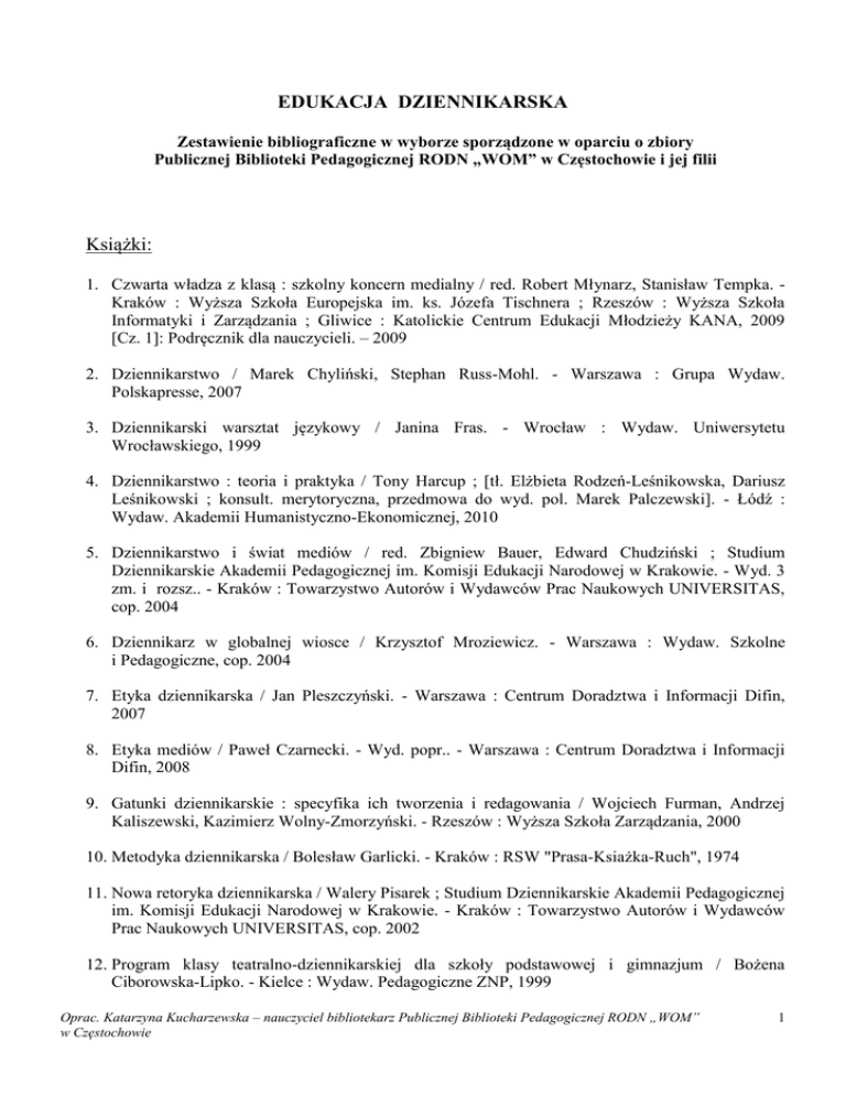 EDUKACJA DZIENNIKARSKA Książki:
