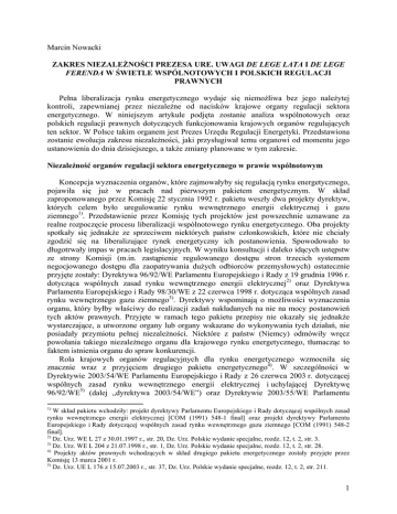 1 Marcin Nowacki ZAKRES NIEZALEŻNOŚCI PREZESA URE