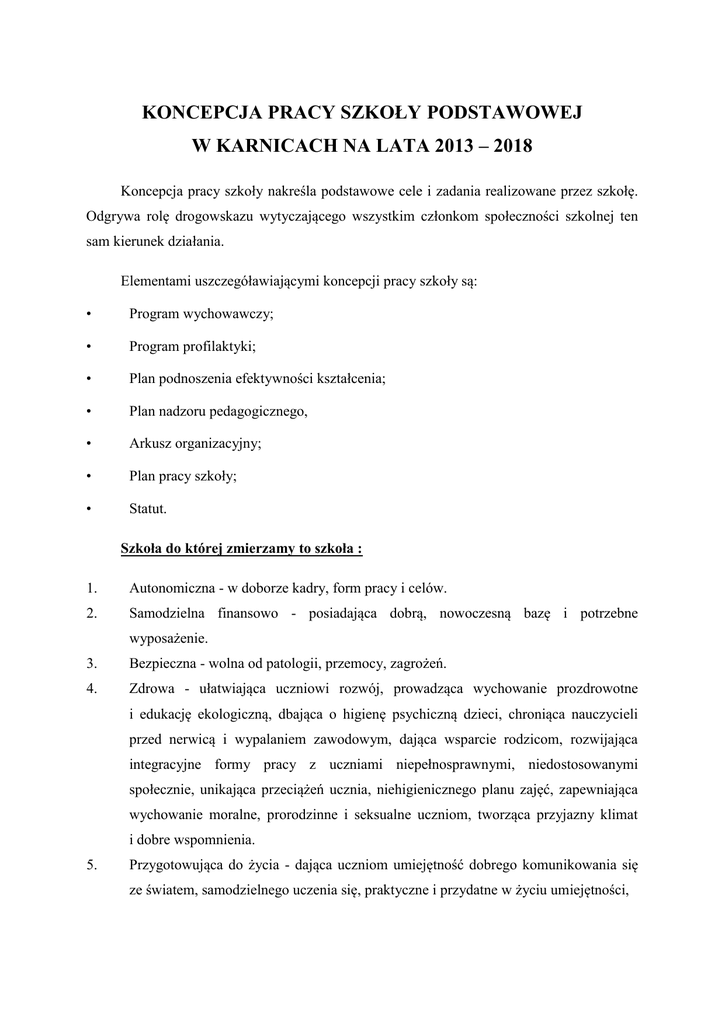 KONCEPCJA PRACY SZKOŁY PODSTAWOWEJ W KARNICACH