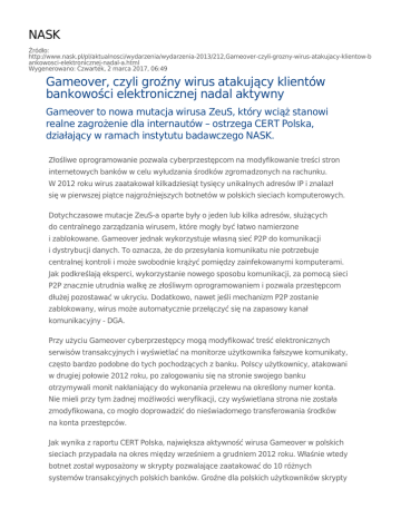 NASK Gameover, czyli groźny wirus atakujący klientów bankowości