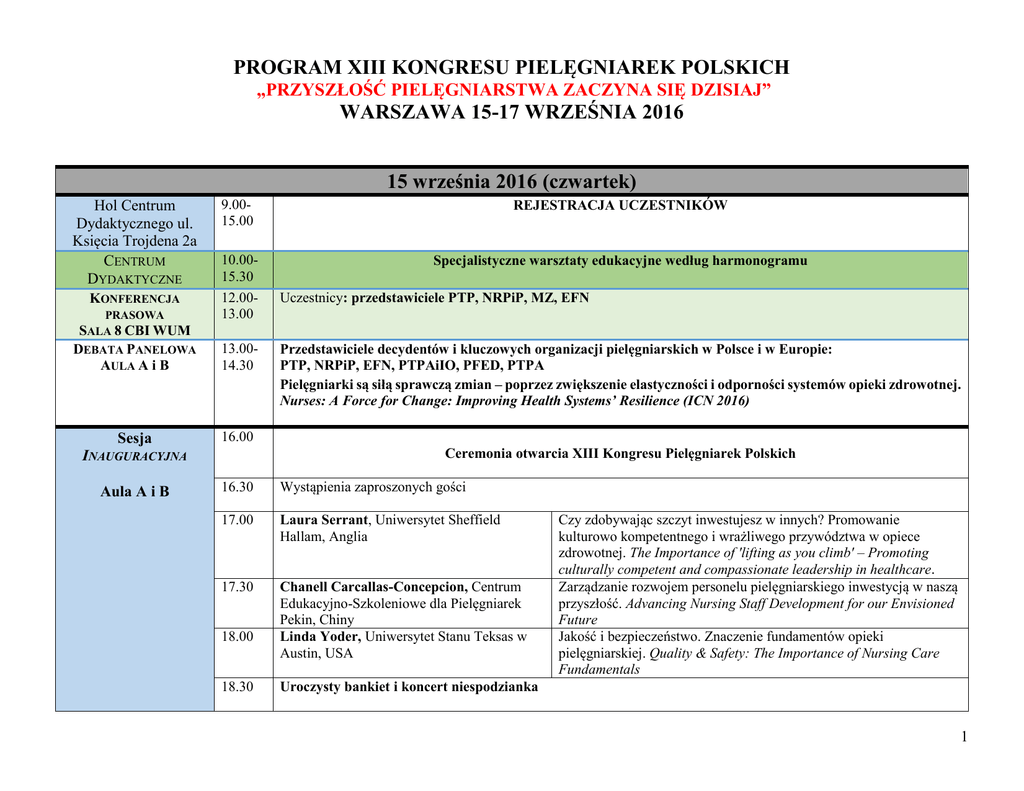 PROGRAM XIII KONGRESU PIELĘGNIAREK POLSKICH