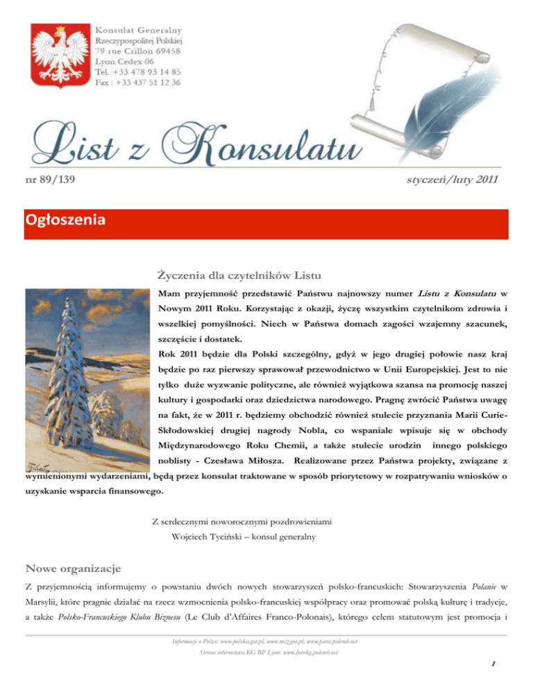 Ogłoszenia - Konsulat Generalny RP w Lyonie