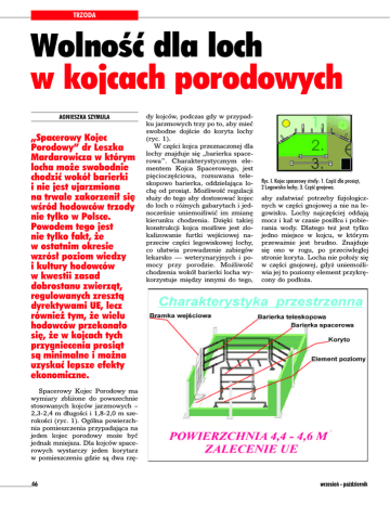 TRZODA Wolność dla loch w kojcach porodowych AGNIESZKA SZYMULA „Spacerowy Kojec Porodowy” dr Leszka Mardarowicza w którym locha może swobodnie chodzić wokół barierki i nie jest ujarzmiona na trwale zakorzenił się wśród hodowców trzody nie tylko w Polsce. Powodem tego jest nie tylko fakt, że w ostatnim okresie wzrósł poziom wiedzy i kultury hodowców w kwestii zasad dobrostanu zwierząt, regulowanych zresztą dyrektywami UE, lecz również tym, że wielu hodowców przekonało się, że w kojcach tych przygniecenia prosiąt są minimalne i można uzyskać lepsze efekty ekonomiczne. dy kojców, podczas gdy w przypadku jarzmowych trzy po to, aby mieć swobodne dojście do koryta lochy (ryc. 1). W części kojca przeznaczonej dla lochy znajduje się „barierka spacerowa”. Charakterystycznym elementem Kojca Spacerowego, jest pięcioczęściowa, rozsuwana teleskopowo barierka, oddzielająca lochę od prosiąt. Możliwość regulacji służy do tego aby dostosować kojec do loch o różnych gabarytach i jednocześnie uniemożliwić im zmianę kierunku chodzenia. Dzięki takiej konstrukcji kojca możliwe jest zlokalizowanie furtki wejściowej naprzeciw części legowiskowej lochy, co ułatwia prowadzenie zabiegów lekarsko — weterynaryjnych i pomocy przy porodzie. Możliwość chodzenia wokół barierki locha wykorzystuje między innymi do tego, Ryc. I. Kojec spacerowy strefy: 1. Część dla prosiąt; 2 Legowisko lochy; 3. Część gnojowa. aby załatwiać potrzeby fizjologicznych w części gnojowej a nie na legowisku. Lochy najczęściej oddają mocz i kał w czasie posiłku i pobierania wody. Dlatego też jest tylko jedno miejsce w kojcu, w którym przeważnie jest brudno. Znajduje się ono w rogu, po przeciwległej stronie koryta. Locha nie położy się w części gnojowej, gdyż uniemożliwia jej to poziomy element przykręcony do podłoża. Spacerowy Kojec Porodowy ma wymiary zbliżone do powszechnie stosowanych kojców jarzmowych – 2,3-2,4 m długości i 1,8-2,0 m szerokości (ryc. 1). Ogólna powierzchnia pomieszczenia przypadająca na jeden kojec porodowy może być jednak mniejsza. Dla kojców spacerowych wystarczy jeden korytarz w pomieszczeniu gdzie są dwa rzę- 46 wrzesień - październik TRZODA Kojec może być instalowany na pełnej posadzce i poprzez system odpowiednich spadków kierować mocz w kierunku kanału odpływowego. Można wówczas stosować słomę i w ten sposób umożliwić losze budowę gniazda przed porodem. Zaleca się jednak instalowanie kojca nad rusztami plastykowymi, które montuje się w kojcu w kształcie litery L, lub T jeśli rozpatrujemy dwa sąsiadujące kojce. Duża część legowiska jest litą posadzką co zabezpiecza lochy przed urywaniem sutek, jak to niejedno- AGROBUDOWNICTWO krotnie ma miejsce gdy locha leży na rusztach. Obsługiwanie chlewni porodowej wyposażonej w omawiane kojce nie jest uciążliwe, nawet, gdy nie zastosowano rusztów. Szczególnie bezpieczna i ergonomiczna jest pomoc przy porodzie i wchodzenie do prosiąt. Karmienie lochy, prosiąt i pomoc przy porodzie odbywa się z jednego korytarza. Po drugiej stronie kojca może być ściana. „Spacerowe Kojce Porodowe” można montować wzdłuż (ryc. 1) lub w poprzek pomieszczenia (ryc. 2). Po kilkunastu dniach można zdemontować przegrodę dzielącą sąsiadujące legowiska dla prosiąt i w ten sposób uzyskać stabilną społecznie grupę prosiąt do dalszych etapów produkcji. Istnieje możliwość połączenia czterech kojców, wówczas możemy odsadzić grupę ok. 40 znanych sobie prosiąt. „Spacerowy Kojec Porodowy” spełnia oczekiwanie lochy, prosiąt i zapewnienia bezpieczną pracę dla obsługi jest przeznaczony zarówno dla małych hodowców jak i wielkich ferm przemysłowych. 47 TRZODA Już ponad 50 hodowców (lato 2004) zdecydowało się na Kojce Spacerowe, w tym 6 na Litwie i Ukrainie. Są tacy, którzy zamówili je już po raz drugi, po pozytywnych doświadczeniach z instalacji pilotażowej. Tak więc wieloletnia praca dr Leszka Mardarowicza i współpracujących z nim osób, mgr inż. Krzysztofa Króla i mgr inż. Agnieszki Szymuli na rzecz popularyzacji systemu chowu zapewniającego dobrostan zwierząt zostały uwieńczone sukcesem, potwierdzonym zadowoleniem hodowców i przyznanym Patentem RP. Pan Tadeusz Rodkiewicz z Góry k/Leszna był pierwszym hodowcą w Polsce, który zdecydował się na zbudowanie pod kierunkiem Dr Leszka Mardarowicza z AR w Lublinie prototypu Kojców Spacerowych. Był to rok 1998. Początkowo zbudowano kilka, cały czas eksperymentując. Dzięki życzliwości Pana Tadeusza w tych właśnie porodówkach prowadzono szereg obserwacji i badań naukowych z udziałem pracowników AR Lublin. W tym czasie kojce w chlewni Pana Rotkiewicza (Foto 1) zdecydowanie różniły się od tych, które oferowane są obecnie. Prace nad doskonaleniem kojca Dr Leszek Mardarowicz prowadził pracowników. Od roku 2000 Spacerowy Kojec Porodowy ma już kształt oferowanego obecnie, choć nadal jest cały czas doskonalony. Instalacja u Czesław Mróz – Litwa Pierwowzór kojca u Tadeusza Rotkiewicza Chlewnia na Litwie. Właściciel: pan Genadius Haritonowas. Instalacja u pana Czesława Mroza na Litwie. już potem w swojej firmie MardaR nakładem wielkich kosztów i wielkim zaangażowaniem Krzysztofa Króla i Agnieszki Szymuli – współ- Plan porodówki u pana Tadeusza Ewertowskiego. Wszyscy hodowcy, którzy posiadają Spacerowe Kojce Porodowe są z nich bardzo zadowoleni i utwierdzeni w słuszność swojego wyboru. Wszyscy stwierdzają, że zagniecenia prosiąt są incydentalne, a ogólna śmiertelność prosiąt od urodzenia do odsadzenia wynosi poniżej 5 %. Dzięki możliwości ruchu ich lochy maja lepszą kondycję przed, w trakcie i po porodzie. Z bezpośrednich obserwacji hodowcy wnioskują, że porody są krótsze a rodzone prosięta bardziej żywotne. Badania przeprowadzane w AR w Lublinie, potwierdzają te spostrzeżenia. Wyka