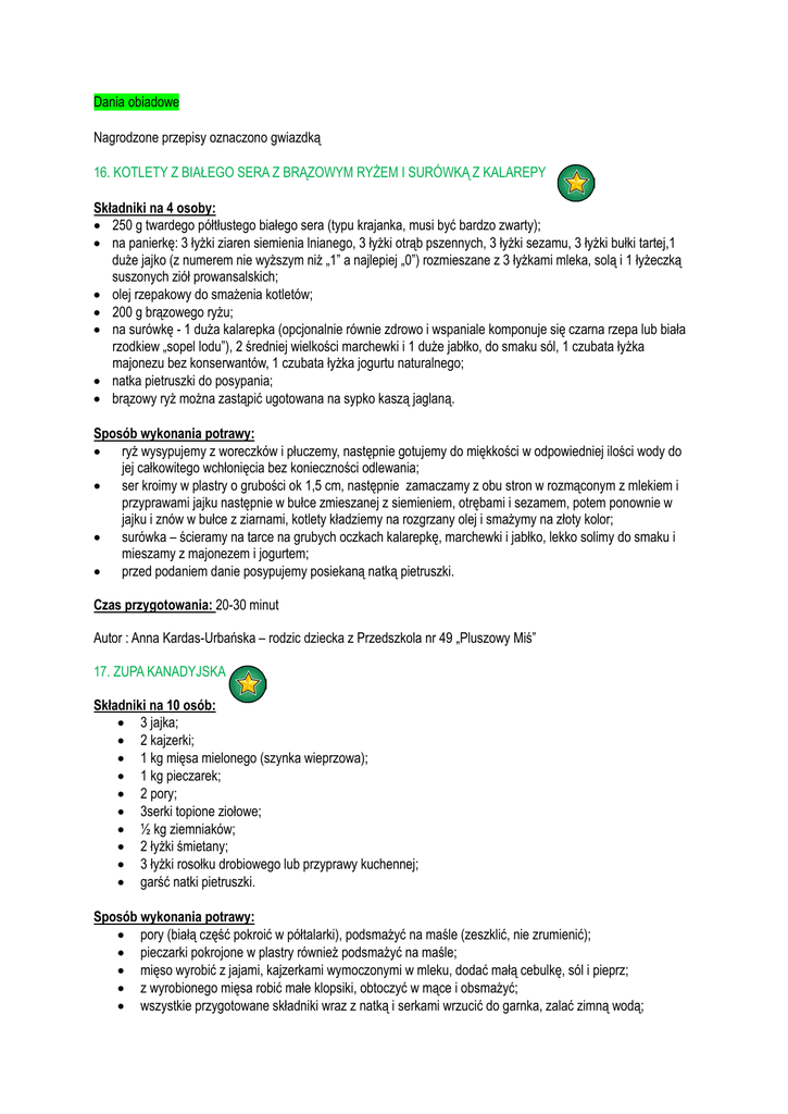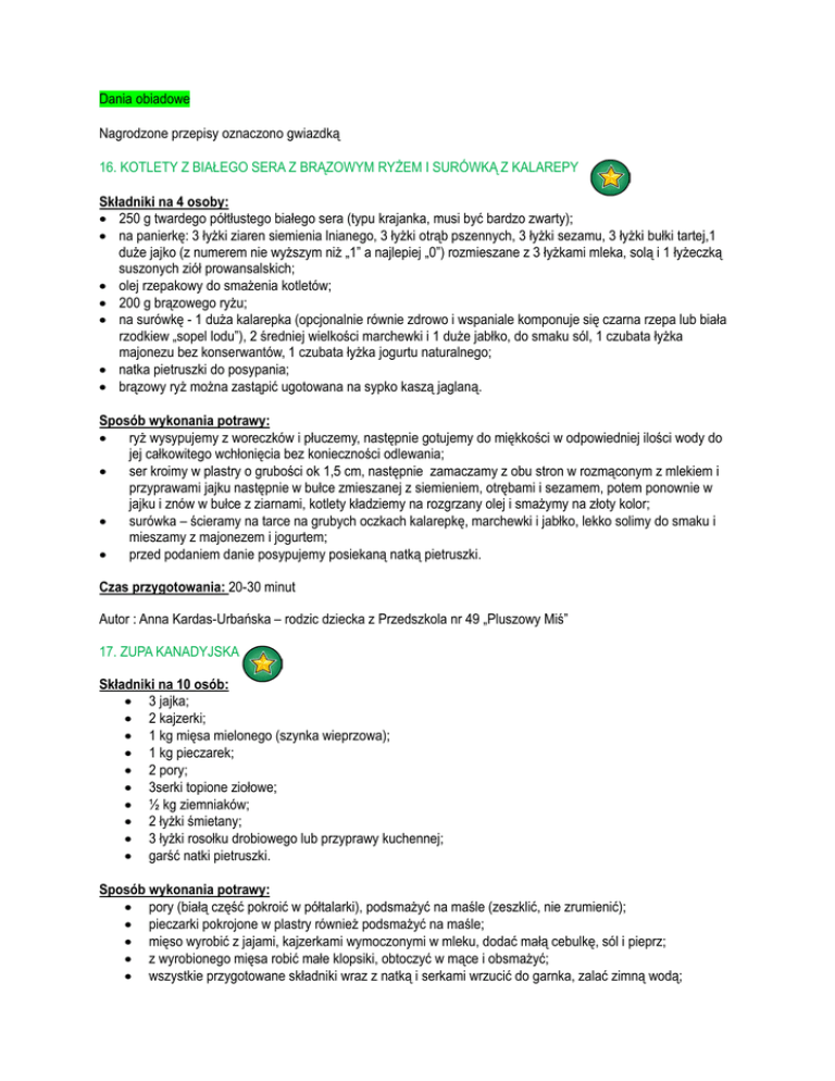 Dania obiadowe Nagrodzone przepisy oznaczono gwiazdką 16