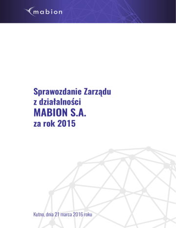 Sprawozdanie Zarządu z działalności MABION SA za rok 2015