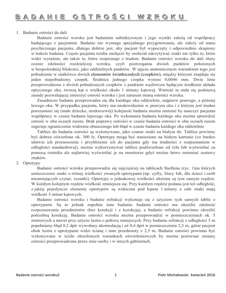 rozpoznawania przedmiotów (bez korekcji i z korekcją), a badanie refrakcji powinno określić