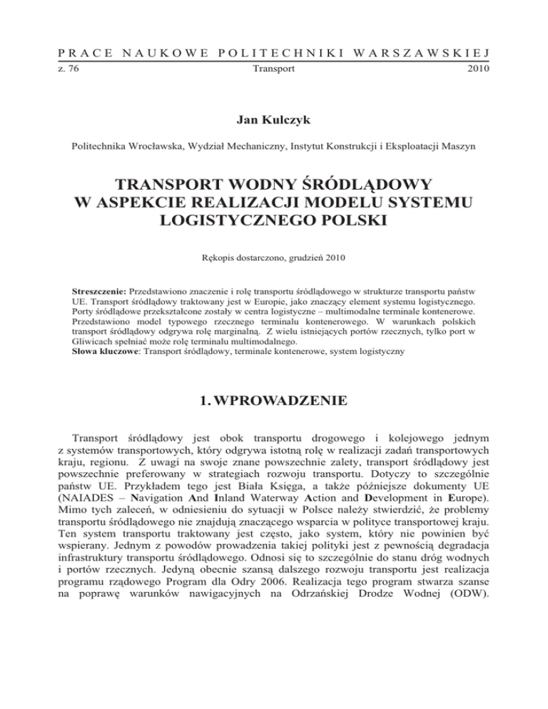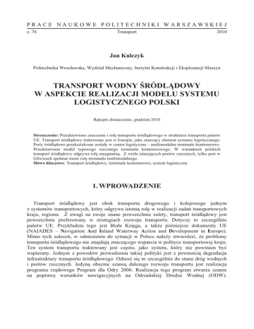 transport wodny ródl dowy w aspekcie realizacji modelu systemu