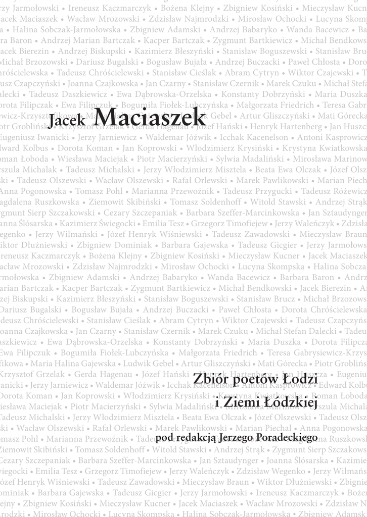 ieczysław Braun • Wiktor Dłużniewski • Zbigniew Dominiak • Barbara Gajewska • Tadeusz Gicgier rzy Jarmołowski • Ireneusz Kaczmarczyk • Bożena Klejny • Zbigniew Kosiński • Mieczysław Kucn Jacek Maciaszek • Wacław Mrozowski • Zdzisław Najmrodzki • Mirosław Ochocki • Lucyna Skomp a • Halina Sobczak-Jarmołowska • Zbigniew Adamski • Andrzej Babaryko • Wanda Bacewicz • Ba ra Baron • Andrzej Marian Bartczak • Kacper Bartczak • Zygmunt Bartkiewicz • Michał Bendkows Jacek Bierezin • Andrzej Biskupski • Kazimierz Błeszyński • Stanisław Boguszewski • Stanisław Bruc Michał Brzozowski • Dariusz Bugalski • Bogusław Bujała • Andrzej Buczacki • Paweł Chłosta • Doro hróścielewska • Tadeusz Chróścielewski • Stanisław Cieślak • Abram Cytryn • Wiktor Czajewski • T usz Czapczyński • Joanna Czajkowska • Jan Czarny • Stanisław Czernik • Marek Czuku • Michał Stefa alecki • Tadeusz Daszkiewicz • Ewa Dąbrowska-Orzelska • Konstanty Dobrzyński • Maria Duszka orota Filipczak • Ewa Filipczuk • Bogumiła Fiołek-Lubczyńska • Małgorzata Friedrich • Teresa Gabr ewicz-Krzysztofikowa • Maria Halina Gajewska • Ludwik Gebel • Artur Gliszczyński • Mati Górecka otr Grobliński • Krzysztof Grzelak • Gerda Hagenau • Józef Hański • Henryk Hartenberg • Jan Huszcz Eugeniusz Iwanicki • Jerzy Jarniewicz • Waldemar Jóźwik • Icchak Kacenelson • Antoni Kasprowicz dward Kolbus • Dorota Koman • Jan Koprowski • Włodzimierz Krysiński • Krystyna Kwiatkowska oman Łoboda • Wiesława Maciejak • Piotr Macierzyński • Sylwia Madaliński • Mirosława Marinow rszula Michalak • Tadeusz Michalski • Jerzy Włodzimierz Misztela • Beata Ewa Olczak • Józef Olsz ski • Tadeusz Olszewski • Wacław Olszewski • Rafał Orlewski • Marek Pawlikowski • Marian Piech Anna Pogonowska • Tomasz Pohl • Marianna Przewoźnik • Tadeusz Przygucki • Tadeusz Różewicz agdalena Ruszkowska • Ziemowit Skibiński • Tomasz Soldenhoff • Witold Stawski • Andrzej Strąk ygmunt Sierp Szczakowski • Cezary Szczepaniak • Barbara Szeffer-Marcinkowska • Jan Sztaudynger anna Ślósarska • Kazimierz Świegocki • Emilia Tesz • Grzegorz Timofiejew • Jerzy Waleńczyk • Zdzisła Wegenko • Jerzy Wilmański • Józef Henryk Wiśniewski • Tadeusz Zawadowski • Mieczysław Braun Wiktor Dłużniewski • Zbigniew Dominiak • Barbara Gajewska • Tadeusz Gicgier • Jerzy Jarmołows Ireneusz Kaczmarczyk • Bożena Klejny • Zbigniew Kosiński • Mieczysław Kucner • Jacek Maciaszek Wacław Mrozowski • Zdzisław Najmrodzki • Mirosław Ochocki • Lucyna Skompska • Halina Sobcza rmołowska • Zbigniew Adamski • Andrzej Babaryko • Wanda Bacewicz • Barbara Baron • Andrz arian Bartczak • Kacper Bartczak • Zygmunt Bartkiewicz • Michał Bendkowski • Jacek Bierezin • An zej Biskupski • Kazimierz Błeszyński • Stanisław Boguszewski • Stanisław Brucz • Michał Brzozows Dariusz Bugalski • Bogusław Bujała • Andrzej Buczacki • Paweł Chłosta • Dorota Chróścielewska adeusz Chróścielewski • Stanisław Cieślak • Abram Cytryn • Wiktor Czajewski • Tadeusz Czapczyńs oanna Czajkowska • Jan Czarny • Stanisław Czernik • Marek Czuku • Michał Stefan Dalecki • Tadeu aszkiewicz • Ewa Dąbrowska-Orzelska • Konstanty Dobrzyński • Maria Duszka • Dorota Filipcza Ewa Filipczuk • Bogumiła Fiołek-Lubczyńska • Małgorzata Friedrich • Teresa Gabrysiewicz-Krzys fikowa • Maria Halina Gajewska • Ludwik Gebel • Artur Gliszczyński • Mati Górecka • Piotr Groblińs Krzysztof Grzelak • Gerda Hagenau • Józef Hański • Henryk Hartenberg • Jan Huszcza • Eugeniu wanicki • Jerzy Jarniewicz • Waldemar Jóźwik • Icchak Kacenelson • Antoni Kasprowicz • Edward Kolbu Dorota Koman • Jan Koprowski • Włodzimierz Krysiński • Krystyna Kwiatkowska • Roman Łoboda Wiesława Maciejak • Piotr Macierzyński • Sylwia Madaliński • Mirosława Marinow • Urszula Michala Tadeusz Michalski • Jerzy Włodzimierz Misztela • Beata Ewa Olczak • Józef Olszewski • Tadeusz Olsz ski • Wacław Olszewski • Rafał Orlewski • Marek Pawlikowski • Marian Piechal • Anna Pogonowska pod redakcją Jerzego Poradeckiego omasz Pohl • Marianna Przewoźnik • Tadeusz Przygucki • Tadeusz Różewicz • Magdalena Ruszkowsk Ziemowit Skibiński • Tomasz Soldenhoff • Witold Stawski • Andrzej Strąk • Zygmunt Sierp Szczakows Cezary Szczepaniak • Barbara Szeffer-Marcinkowska • Jan Sztaudynger • Joanna Ślósarska • Kazimie wiegocki • Emilia Tesz • Grzegorz Timofiejew • Jerzy Waleńczyk • Zdzisław Wegenko • Jerzy Wilmańs ózef Henryk Wiśniewski • Tadeusz Zawadowski • Mieczysław Braun • Wiktor Dłużniewski • Zbignie ominiak • Barbara Gajewska • Tadeusz Gicgier • Jerzy Jarmołowski • Ireneusz Kaczmarczyk • Bożen lejny • Zbigniew Kosiński • Mieczysław Kucner • Jacek Maciaszek • Wacław Mrozowski • Zdzisław N Jacek Maciaszek Zbiór poetów Łodzi i Ziemi Łódzkiej Jacek Maciaszek (1958) U Poeta rodził się 6 lipca 1958 r. w Turku. Studiował filologię polską na Uniwersytecie Łódzkim. Debiutował wierszem Nie było mnie... na łamach tygodnika „Radar” (Warszawa 1976). Wydał zbiór wierszy Pierwsze czytanki (Łódź 1971), jest też autorem opowiadań i recenzji publikowanych w czasopismach. Na początku lat dziewięćdziesiątych wyjechał do Hiszpanii. biogram ABisk 2007 wybór JPor 2007 • T. Błażejewski: Współczesna Łódź literacka. Łódź 1989. • B. Kowszewicz: Pierwsze czytanki. „Poezja” 1988 nr 1 [rec]. • Jacek Maciaszek • Spis wierszy bing bang bestialstwo lata pięćdziesiąte skrzydła blues poemat mojej niewiary z martwych zdrowy sceptycyzm wiersz dla Miłosza • Jacek Maciaszek • z tomu Pierwsze