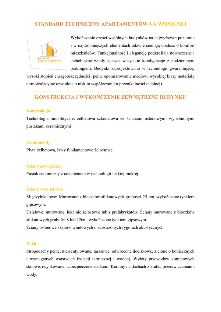 Standard techniczny PDF - Apartamenty Na Wspólnej