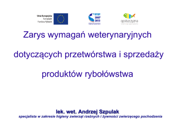 Zarys wymagań weterynaryjnych dotyczących przetwórstwa i sprzedaży produktów rybołówstwa lek. wet. Andrzej Szpulak specjalista w zakresie higieny zwierząt rzeźnych i żywności zwierzęcego pochodzenia Sprzedaż: ryb „w całości” ryb uśmierconych, wykrwawionych ryb patroszonych tusz (bez głów) ryb pozbawionych płetw można prowadzić w ramach najprostszej formy działalności, tzw. sprzedaży bezpośredniej Dalszą obróbkę ryb (dzielenie na płaty, dzwonka, filety) i przetwórstwo ryb (wędzenie, smażenie, marynaty, itp.) oraz sprzedaż tych produktów można prowadzić w ramach działalności marginalnej, lokalnej i ograniczonej lub zatwierdzonego zakładu przetwórstwa ryb ograniczenia związane ze sprzedażą bezpośrednią sprzedaż ryb wyłącznie: - konsumentowi końcowemu, lub do tzw. zakładów detalicznych, z przeznaczeniem dla konsumenta końcowego (czyli sklepów detalicznych, restauracji, stołówek, itp.) na obszarze województwa, w którym prowadzona jest działalność lub na obszarze sąsiadujących z nim województw - na terenie gospodarstw rybackich - na targowiskach - ze specjalistycznych środków transportu (nie ma limitu ilościowego sprzedawanych produktów rybołówstwa) ograniczenia związane z działalnością MLO sprzedaż ryb wyłącznie: konsumentowi końcowemu i do tzw. zakładów detalicznych, z przeznaczeniem dla konsumenta końcowego (czyli sklepów detalicznych, restauracji, stołówek, itp.) na obszarze województwa, w którym prowadzona jest działalność lub na obszarze sąsiadujących z tym województwem powiatów - limit sprzedaży dotyczy wyłącznie sprzedaży do zakładów detalicznych zaopatrujących konsumenta końcowego i wynosi 150 kg tygodniowo Porównanie możliwości produkcji i sprzedaży w ramach t SB, MLO Działalność marginalna, lokalna i ograniczona Sprzedaż bezpośrednia Surowce wyłącznie własne Surowce również z zakupu Sprzedaż ryb żywych - Uśmiercanie i wstępna obróbka w ograniczonym zakresie, wyłącznie: - patroszenie, - odgławianie, - usuwanie płetw. - ryb Obróbka ryb bez ograniczeń (w tym filetowanie, dzwonkowanie) Przetwórstwo ryb, np.: - smażenie - wędzenie, - marynowanie, - inne. t Wymagania dla pomieszczeń Prawo żywnościowe stawia jedynie ogólne warunki i cele jakie należy osiągnąć, nie narzucając jednocześnie konkretnych rozwiązań (np.: co do wielkości i układu pomieszczeń, rodzaju stosowanych materiałów wykończeniowych). Wybór sposobu w jaki wymagania zostaną spełnione należy do inwestora. Część wymagań, tam gdzie mają one zastosowanie, (np.: natężenie oświetlenia, wielkość wymiany powietrza, powierzchnia szatni) jest regulowana innymi przepisami i normami (np.: przepisy BHP, Polskie Normy). t Przykładowe wymagania dla pomieszczeń produkcyjnych Konstrukcja umożliwiająca zachowanie zasad higieny: - posadzki, ściany, sufity, drzwi i okna w dobrym stanie technicznym, łatwe do mycia i dezynfekcji, - skuteczna wentylacja zapobiegająca powstawaniu skroplin, - odpowiednie naturalne lub sztuczne oświetlenie, - bieżąca ciepła i zimna woda zdatna do spożycia przez ludzi. t Przykładowe wymagania dla pomieszczeń produkcyjnych - Konstrukcja, wielkość i wyposażenie pomieszczeń muszą być dostosowane do rodzaju i wielkości produkcji. - Rozmieszczenie pomieszczeń nie może powodować tzw. krzyżowania dróg. - Musi istnieć możliwość przechowywania żywności we właściwej temperaturze. - Oświetlenie pomieszczeń, naturalne lub sztuczne, ma być odpowiednie do wykonywanych czynności - Wentylacja pomieszczeń ma zapobiegać powstawaniu skroplin. - Pomieszczenia muszą być zabezpieczone przed dostępem szkodników i zanieczyszczeniami. t Przykładowe wymagania dla sprzętu Sprzęt, urządzenia i inne przedmioty mające kontakt z żywnością nie mogą powodować jej zanieczyszczenia. Muszą być utrzymywane w dobrym stanie i kondycji technicznej, Musi istnieć możliwość ich mycia i dezynfekcji, Muszą być czyszczone (myte, dezynfekowane) z częstotliwością zależną do potrzeb, Muszą być tak zainstalowane, aby możliwe było czyszczenie obszaru wokół nich, Sprzęt drobny (noże) powinien być sterylizowany w wodzie o temperaturze min. 82°C, co 2 godziny przez min. 10 minut. Wymagania temperaturowe Temperatura produktów rybołówstwa podczas transportu i sprzedaży nie może przekraczać 2°C (z wyłączeniem żywych ryb) t Odpady Postępowanie z odpadami podczas produkcji nie może powodować zanieczyszczenia żywności. Odpady muszą być przechowywane w szczelnych, zamykanych, oznakowanych pojemnikach. Podczas magazynowania muszą być zabezpieczone przed dostępem zwierząt, jeżeli nie są wysyłane codziennie, magazynowane w odpowiednich temperaturach. muszą być t Znakowanie produktów Poza terenem gospodarstwa rybackiego prowadzącego sprzedaż bezpośrednią, na opakowaniach zbiorczych lub transportowych z produktami rybołówstwa, umieścić należy: 1) Imię i nazwisko albo nazwę producenta 2) Adres miejsca prowadzenia działalności Te same dane umieścić należy w miejscach w sposób czytelny i widoczny dla konsumenta sprzedaży, Sprzedaż bezpośrednia oraz działalność MLO wymagają rejestracji u właściwego terytorialnie powiatowego lekarza weterynarii Opracowanie projektu technologicznego zakładu Wniosek do PLW o zatwierdzenie projektu Uzyskanie decyzji PLW o zatwierdzeniu projektu Max 30 dni Wniosek do PLW o rejestrację zakładu i wpis do rejestru Uzyskanie decyzji PLW o rejestracji zakładu i nadaniu WNI Rozpoczęcie produkcji Max 30 dni t Dobrostan ryb Od 1 stycznia 2012 r. na mocy ustawy o ochronie zwierząt: transport żywych ryb lub ich przetrzymywanie w celu sprzedaży bez dostatecznej ilości wody umożliwiającej oddychanie uznawane jest za znęcanie się nad zwierzętami ROZPORZĄDZENIE RADY (WE) NR 1099/2009 z dnia 24 września 2009 r. w sprawie ochrony zwierząt podczas ich uśmiercania podcz