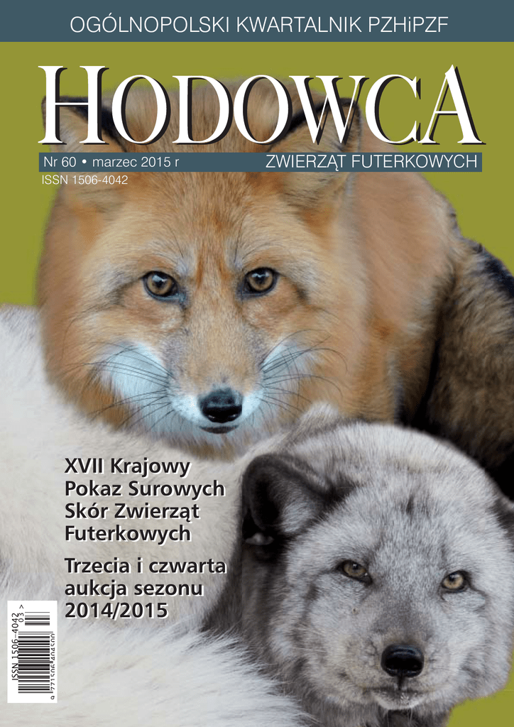 OGÓLNOPOLSKI KWARTALNIK PZHiPZF Nr 60 • marzec 2015 r ISSN 1506-4042 XVII Krajowy Pokaz Surowych Skór Zwierząt Futerkowych Trzecia i czwarta aukcja sezonu 2014/2015 ZWIERZĄT FUTERKOWYCH GĄSIOREK Sp.J. ul. Wrzesińska 8 62-250 Czerniejewo tel. 61 4273 166 e-mail: [email protected] GOSPODARSTWO ROLNO-HODOWLANE GĄSIOREK Sp.J. Czerniejewo Ogłasza nowe ceny na k armę dla norek 1,39 zł EDYTORIAL SPIS TREŚCI Klaudia Gołąbek redaktor naczelna Szanowni Hodowcy, Drodzy Czytelnicy! W Bydgoszczy 7 lutego br. odbył się Krajowy Pokaz Skór Zwierząt Futerkowych, z którego relację przedstawiamy w artykule załączonym do tego numeru. Pokaz objął swoim patronatem Minister Rolnictwa i Rozwoju Wsi. Było to bardzo ważne wydarzenie dla wszystkich hodowców, w którym uczestniczyli przedstawiciele lokalnych samorządów i parlamentu. W aktualnościach przedstawiamy sprawozdanie z odbytych posiedzeń Komisji Rolnictwa i Rozwoju Wsi oraz Komisji Środowiska. Przedstawiamy również komunikaty z odbytych spotkań przedstawicieli Polskiego Związku Hodowców i Producentów Zwierząt Futerkowych w ramach Federacji Branżowych Związków Producentów Rolnych z ministrem Markiem Sawickim w Ministerstwie Rolnictwa i Rozwoju Wsi oraz w Sejmie i Senacie RP. W części naukowej przedstawiane zostały problemy z zakresu hodowli i zdrowia zwierząt futerkowych. Część z nich nawiązuje do zbliżającego się sezonu hodowlanego. Warto wykorzystać w praktyce zawodowej zawartą w nich wiedzę. Oprócz specjalistycznych tekstów, sprawozdań z działań, dla każdego hodowcy interesująca jest aktualna sytuacja na rynku skór zwierząt futerkowych, sprzedaż, ceny i prognoza na przyszłość. Polski Związek Hodowców i Producentów Zwierząt Futerkowych działa z myślą o interesie hodowców. Zarząd chętnie występuje na zewnątrz, pomaga i wspiera akcje charytatywne. Toteż zapraszamy do zapoznania się z materiałem przedstawiającym działania PZHIPZF na rzecz potrzebujących. Z poważaniem, Klaudia Gołąbek redaktor naczelna 4 XVII Krajowy Pokaz Surowych Skór Zwierząt Futerkowych 12 Komunikat ze spotkania ministra Marka Sawickiego z Radą Federacji Branżowych Związków Producentów Rolnych 13 Miejsce działu specjalnego – hodowla zwierząt futerkowych w polskim rolnictwie 15 Komunikat z udziału w dniu 3 marca 2015 r. przedstawicieli PZHiPZF w posiedzeniu Senackiej Komisji Rolnictwa i Rozwoju Wsi 15 Informacja o pracach Komisji Sejmowych VII kadencji 24 Trzecia i czwarta aukcja sezonu 2014/2015 26 Dziękujemy członkom Polskiego Związku Hodowcówi Producentów Zwierząt Futerkowych za okazane serce 32 MARIAN BRZOZOWSKI Czy restrykcyjne żywienie może wpłynąć negatywnie na rozwój gruczołów mlekowych u norek? 36 TADEUSZ JAKUBOWSKI, TOMASZ NALBERT Choroby skóry mięsożernych zwierząt futerkowych II. Gronkowcowe wysiękowe zapalenie skóry lisów 38 KRZYSZTOF KOSTRO, JERZY LECHOWSKI Znaczenie Þzjologiczne witamin u mięsożernych zwierząt futerkowych Hodowca Zwierząt Futerkowych jest ogólnopolskim kwartalnikiem zawierającym informacje z zakresu chowu i hodowli mięsożernych zwierząt futerkowych oraz ochrony środowiska, uregulowań prawnych i sytuacji rynkowej dotyczących tych gatunków zwierząt. Rada programowa: dr Tadeusz Jakubowski (przewodniczący Rady) prof. dr hab. Marian Brzozowski, prof. dr hab. Andrzej Gugołek, prof. dr hab. Krzysztof Kostro, Klaudia Gołąbek, Roman Horoszczuk. Wydawca: PZHiPZF 00-002 Warszawa, ul. Świętokrzyska 20, lok. 301 Prezes Zarządu: Rajmund Gąsiorek www.pzhipzf.pl Adres redakcji: 00-002 Warszawa, ul. Świętokrzyska 20, lok. 301 email: [email protected] Redaktor naczelna: Klaudia Gołąbek Korekta: Ewa Matyba Nakład: 2000 egzemplarzy. Redakcja zastrzega sobie prawo dokonywania przeróbek i skrótów w nadesłanych artykułach, nie zwraca niewykorzystanych materiałów oraz nie odpowiada za treść reklam i ogłoszeń. Tłumaczenia z czasopism zagranicznych drukowane są jako obszerne streszczenia. Prawa autorskie i wydawnicze zastrzeżone. Publikacja jest chroniona przepisami prawa autorskiego. Wykonywanie kserokopii lub powielanie inną metodą oraz rozpowszechnianie bez zgody wydawcy, w całości lub części JEST ZABRONIONE i podlega odpowiedzialności karnej. ISSN 1506-4042 Zdjęcie na okładce: Tadeusz Jakubowski 3 AKTUALNOŚCI XVII Krajowy Pokaz Surowych Skór Tradycyjnie w pierwszą sobotę lutego Bydgoszcz gościła hodowców zwierząt futerkowych z całego kraju. Formuła imprezy od wielu lat pozostaje niezmienna. 4 J ak co roku, pokaz gromadzi nie tylko hodowców i wystawców związanych z branżą, ale także przedstawicieli świata nauki i polityki. Wzorem lat ubiegłych, organizatorzy tegorocznej imprezy: Skinpolex Sp. z o.o., Skinpolex Polska Sp. z o.o., PZHiPZF oraz KCHZ dołożyli wszelkich starań, aby odbyła się ona zgodnie z planem a zaproszeni goście gwarantowali znakomity poziom merytoryczny. Tegoroczny pokaz skór w Bydgoszczy honorowym patronatem objął minister rolnictwa i rozwoju wsi Marek Sawicki. To dobitnie pokazuje, jak ważną i rozwojową gałęzią rolnictwa jest hodowla zwierząt futerkowych w naszym kraju i jednoznacznie podkreśla coraz wyższą rangę naszej imprezy. Niestety, ze względu na wcze- śniej zaplanowane obowiązki służbowe, Pan Minister nie mógł zaszczycić nas swoją obecnością. List do hodowców w jego imieniu, który publikujemy na stronie 7, odczytała pani Ewa Krawczyk, zbierając duże owacje uczestników. Wśród zaproszonych gości nie mogło zabraknąć przedstawicieli świata nauki, reprezentujących największe polskie uczelnie. Obecni byli m.in.: prof. Marian Brzozowski, prof. Ryszard Cholewa, dr Tadeusz Jakubowski, prof. Krzysztof Kostro, prof. Stanisław Socha, prof. Roman Szymeczko. Świat polityki reprezentowali: wicemarszałek Sejmu Eugeniusz Grzeszczak, senator Piotr Gruszczyński, poseł Eugeniusz Kłopotek oraz poseł do Parlamentu Europejskiego HODOWC