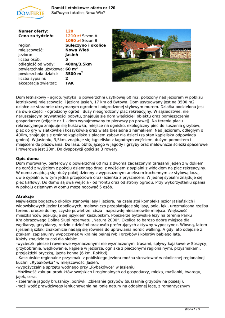 Domki Letniskowe: oferta nr 120