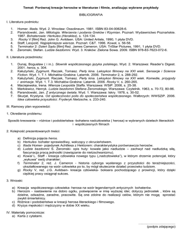 Temat: Porównaj kreacje herosów w literaturze i filmie, analizując