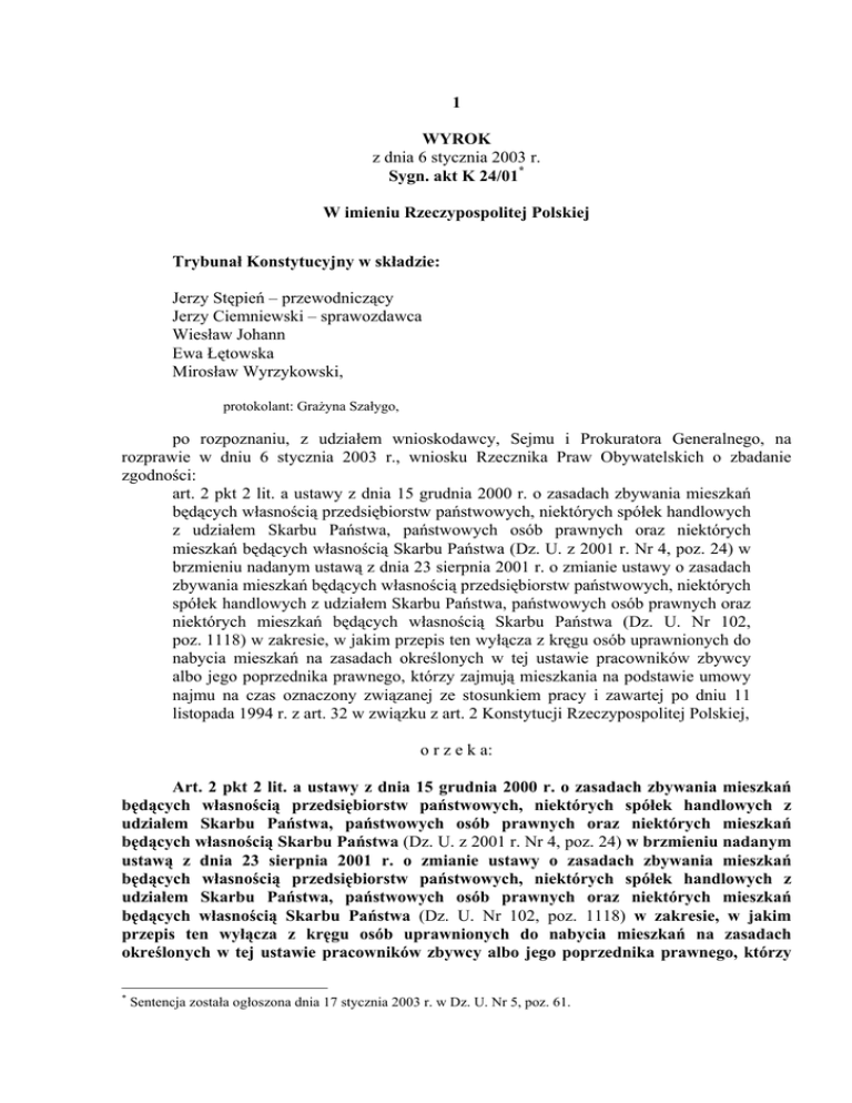 1 WYROK z dnia 6 stycznia 2003 r. Sygn. akt K 24/01* W imieniu