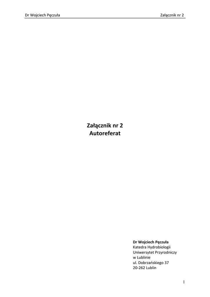 Autoreferat - Wydział Biologii i Ochrony Środowiska
