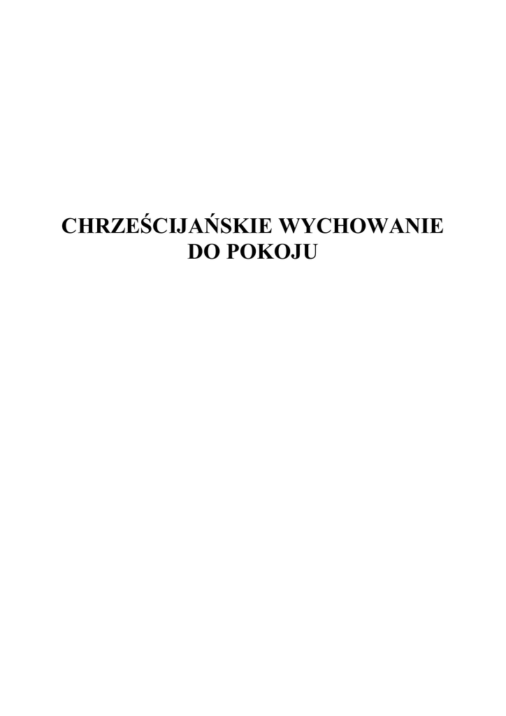 CHRZEŚCIJAŃSKIE WYCHOWANIE DO POKOJU