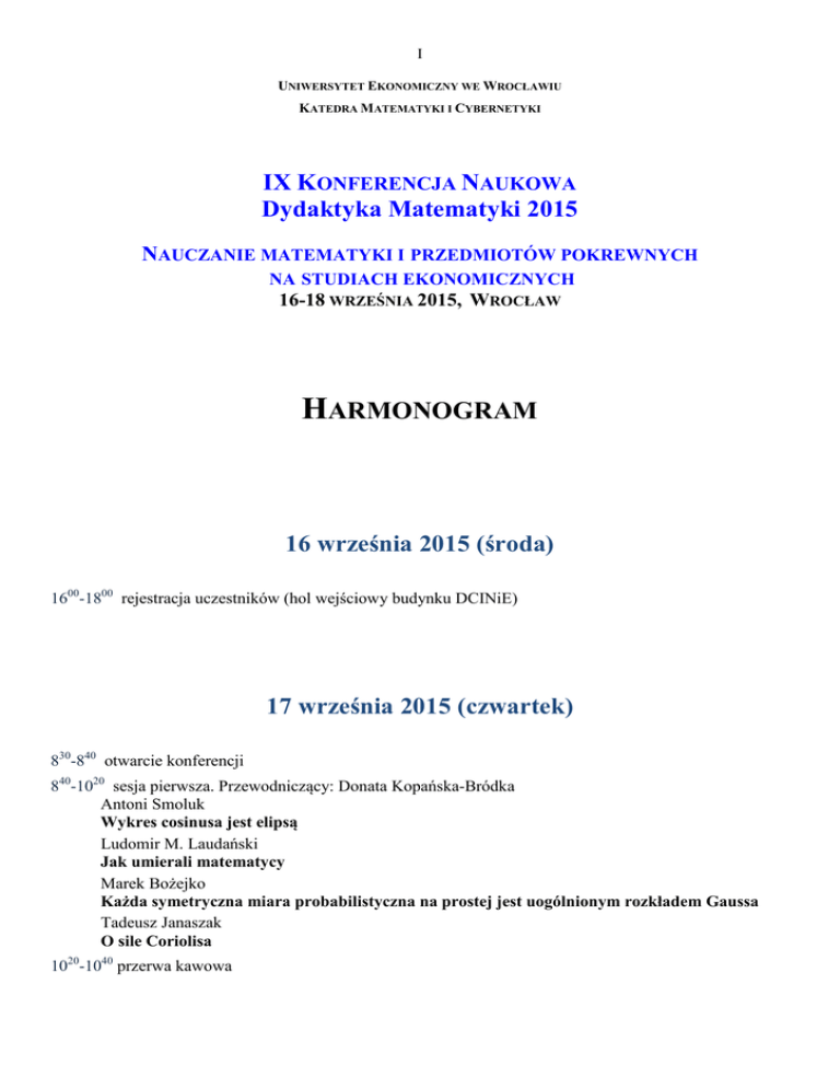 DM2015 Harmonogram.docx - Katedra Matematyki Uniwerystetu