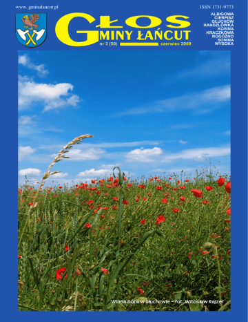 www. gminalancut.pl ISSN 1731-9773 nr 3 (50) ............................. czerwiec 2009 str. ALBIGOWA CIERPISZ GŁUCHÓW HANDZLÓWKA KOSINA KRACZKOWA ROGÓŻNO SONINA WYSOKA Winna Góra w Głuchowie – fot. Witosław Rajzer str. 2 „Smaki i Aromaty z Galicyjskiej Chaty - Sonina 17 maja 2009 r. Fot. A. Kuźniar Cześć Maryi – Cierpisz 24 maja 2009 r. Fot. J. Baran, A. Rajzer str. URZĄD W numerze m.in.: • Realizacja budżetu gminy w 2008 r. str. 4 • Bezpiecznie na wakacjach str. 12 • Wmurowanie Kamienia węgielnego w Kraczkowej str. 13 • Majówka z goścmi z Ukrainy str. 13 • Chempion z Głuchowa str. 14 • Smaki i Aromaty str. 15 • Życie szkoły str. 16 - 21 • Ośrodek Caritas w Wysokiej str. 21 • Maciej Kryński w programie „Eureko, ja to wiem” str. 22 • Wieczornice Papieskie str. 25 • Chór „Alcanto” na Ukrainie str. 30 • Powiatowy Dzień Matki str. 32 • Józef Sowa na Czarnym Lądzie str. 34 • Ludwik Szydełko z Cierpisza str. 35 • Na Monte Casino str. 38 • Historia opowiedziana przez Bartłomieja Michnę str. 39 • Wiersz Jana Bartmana str. 41 • Sport str. 41 Zwiastuny: 10 lat Głosu Gminy Łańcut Drodzy Czytelnicy „Głosu Gminy Łańcut” Szanowni Mieszkańcy Pragnę zauważyć, że nasza gazeta gminna przeżywa pierwszy, ale za to podwójny jubileusz. Jest to 10-lecie „Głosu Gminy Łańcut” oraz jej kolejno 50-ty numer. Wszystko zaczęło się w 1999 r. od pomysłu utworzenia gminnego pisma i konkursu na jego tytuł. Przez ten czas wiele osób angażowało się w redagowanie i gromadzenie materiałów prasowych. Ciągle treść, format i koncepcja wydawnicza ewaluowała tak, aby być jak najbardziej interesująca dla odbiorców. Trochę historii i statystycznych spostrzeżeń – pierwsze 3 numery były czarno-białe, późniejsze już z kolorową okładką. Numer 25 ukazał się w grudniu 2004 r. Od numeru 31 (pierwszy numer z 2006 r.) przyjęliśmy standardowy format gazety A4. Pierwszy numer liczył 16 stron, a 50-ty ... 44 strony. W gazecie poruszanych jest wiele dziedzin życia naszej gminy, przedstawiamy najważniejsze wydarzenia, ukazujemy bieżące sprawy związane z funkcjonowaniem naszego samorządu, nie zapominamy o historii naszej małej ojczyzny i staramy się ją wiernie dokumentować. Przez te lata stworzyło się obszerne, wielotematyczne źródło wiedzy o gminie, także utrwalonej w fotografiach. Gazeta też doczekała w 2006 r. formy elektronicznej dostępnej na gminnym portalu internetowym. Chciałbym serdecznie podziękować wszystkim, którzy do tej pory współpracowali i współpracują przy tworzeniu gazety, poświęcają czas na przygotowanie artykułów, wyszukują tematy, służą radą i pomocą. Jednocześnie zapraszam mieszkańców gminy, szkoły, stowarzyszenia do aktywnego uczestniczenia w współredagowaniu gazety, dzielenia się swoimi pomysłami i spostrzeżeniami. Ze swej strony życzę sobie, aby grono czytelników stale się powiększało, a współpraca i pomoc mieszkańców w redagowaniu gazety była satysfakcjonująca i przynosiła wszystkim zadowolenie z jej lektury, aby każdy czytelnik mógł odnaleźć w „Głosie Gminy Łańcut” przydatne dla siebie informacje. Zbigniew Łoza Wójt Gminy Łańcut XXVII Sesja Rady Gminy Łańcut • X Festiwal kwiatów – Albigowa - 19 lipca • Festiwal Kapel Podwórkowych – Wysoka - 26 lipca • Biesiada Pszczelarska – Sonina - 2 sierpnia • Dożynki Gminne – Rogóżno - 30 sierpnia W sesji uczestniczyło 19 radnych. Rada podjęła 7 uchwał. Głównym tematem obrad było rozpatrzenie sprawozdania z wykonania budżetu Gminy Łańcut za 2008 r. oraz udzielenie absolutorium Wójtowi Gminy z tego tytułu. Ponadto: Kalendarium: 1. Rada zatwierdziła taryfy opłat za usługi związane z dostarczaniem wody i odprowadzaniem ścieków. • Koncert Pieśni Wielkanocnej – Kosina 26 kwietnia 2009 r. • 23 maja Chór „Nicolaus” zdobył I miejsce w Międzynarodowym Festiwalu Pieśni Religijnej „Cantate Deo” w Rzeszowie – 16 kwietnia 2009 r. 2. Dokonano bieżących zmian w budżecie Gminy Łańcut. 3. Podjęto uchwałę w sprawie ustalenia regulaminu dodatków, nagród oraz wynagrodzenia za godziny ponadwymiarowe i godziny doraźnych zastępstw dla nauczycieli zatrudnionych w szkołach i przedszkolach prowadzonych przez Gminę Łańcut oraz w sprawie ustale- redaguje zespół: Marta Pyda, Katarzyna Karczmarz, Andrzej Łobaza. Adres redakcji: Urząd Gminy Łańcut, ul. Mickiewicza 2a, 37-100 Łańcut, tel. 0 17 225 22 64, fax 0 17 225 65 36, e-mail: [email protected], www.gminalancut.pl • Redakcja techniczna Andrzej Kuźniar – Centrum Kultury Gminy Łańcut • Redakcja zastrzega sobie prawo wyboru i skracania nadsyłanych materiałów. Za treść reklam i ogłoszeń redakcja nie ponosi odpowiedzialności • Nakład 2500 egz. • Druk. „Techgraf ” Łańcut nia zasad rozliczania tygodniowego obowiązkowego wymiaru godzin zajęć nauczycieli, dla których ustalony plan zajęć jest różny w poszczególnych okresach roku szkolnego. 4. W ramach przygotowań do wyborów do Parlamentu Europejskiego zarządzonych na dzień 7 czerwca 2009 r. utworzono obwód głosowania w Zakładzie Opiekuńczo-Leczniczym w Handzlówce. 5. Podjęto uchwałę w sprawie przebiegu i zaliczenia drogi „Zagumnia Północne” w Kraczkowej do kategorii dróg gminnych. 6. Ponownie rozpatrywano sprawę utworzenia publicznego gimnazjum w Rogóżnie. Po wnikliwej analizie Rada negatywnie zaopiniowała tą sprawę, głównie ze względów ekonomicznych oraz demograficznych i lokalowych. Opr. M.Pyda URZĄD str. XXVIII Sesja Rady Gminy Łańcut – 29 maja 2009 r. W sesji uczestniczyło 21 radnych. Rada podjęła 6 uchwał. Głównym tematem obrad było włączenie Publicznego Gimnazjum w Wysokiej do Zespołu Szkół im. Tadeusza Kościuszki w Wysokiej. Ponadto: 1. Omówiono aktualny stan przygotowań dotyczący przyjęcia miejscowego planu zagospodarowania prze