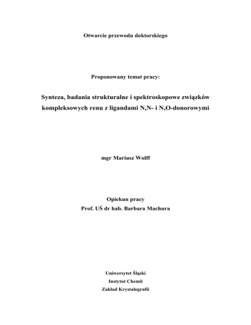 [5] B. Machura, M. Wolff, A. Świtlicka, Nowy dwurdzeniowy oksokompleks renu(V)