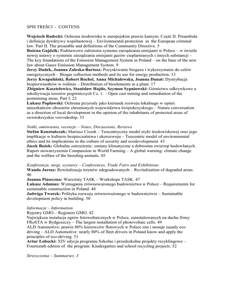 SPIS TREŚCI - CONTENS Wojciech Radecki: Ochrona środowiska