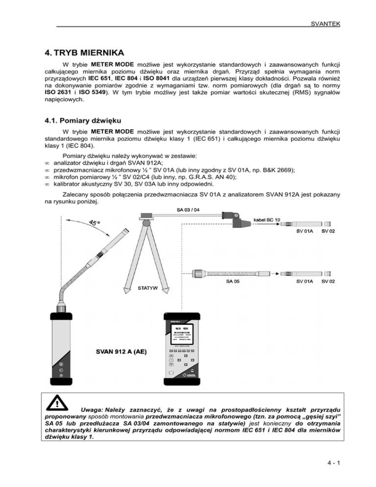 standardowego miernika poziomu dźwięku klasy 1 (IEC 651) i całkującego miernika poziomu dźwięku