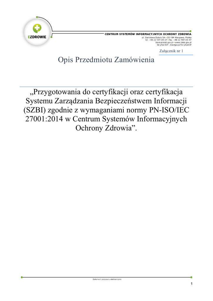 Opis Przedmiotu Zamówienia „Przygotowania do certyfikacji oraz