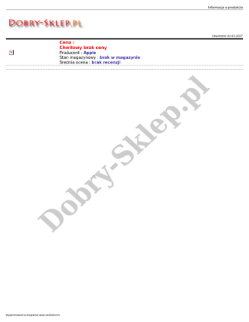 Informacje o produkcie Utworzono 02-03-2017 Cena : Chwilowy brak ceny D ob ry - Sk le p. pl Producent : Apple Stan magazynowy : brak w magazynie Średnia ocena : brak recenzji Wygenerowano w programie www.oscGold.com