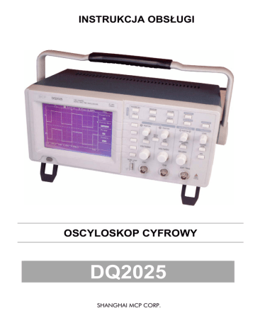 INSTRUKCJA OBSŁUGI OSCYLOSKOP CYFROWY DQ2025 SHANGHAI MCP CORP. -2- Spis treści Strona 1. WSTĘP..............................................................................................................................5 2. CHARAKTERYSTYKA OSCYLOSKOPU ..........................................................................6 2.1. Zasady bezpieczeństwa .............................................................................................6 2.2. Sprawdzenie oscyloskopu ..........................................................................................7 2.3. Kompensacja sondy ...................................................................................................8 2.4. Ustawienie tłumienności sondy...................................................................................8 3. PODSTAWY OBSŁUGI .....................................................................................................9 3.1. Interfejs użytkownika ..................................................................................................9 3.2. Wyświetlanie przebiegu ............................................................................................10 3.3. Elementy regulacji pionowej .....................................................................................10 3.4. Elementy regulacji poziomej .....................................................................................11 3.5. Elementy regulacji układu wyzwalania......................................................................11 3.6. Przyciski menu i przyciski sterujące .........................................................................12 3.7. Złącza .......................................................................................................................12 4. OPIS FUNKCJI POMIAROWYCH ...................................................................................13 4.1. Sterowanie toru pionowego ......................................................................................13 4.2. Regulacja parametrów czasowych ...........................................................................14 4.3. Sterowanie wyzwalaniem .........................................................................................14 4.4. Gromadzenie sygnałów ............................................................................................17 4.5. Automatyczne dopasowanie parametrów .................................................................18 4.6. Kursory .....................................................................................................................19 4.7. Wyświetlanie.............................................................................................................19 4.8. Pomiary ....................................................................................................................20 4.9. Operacje arytmetyczne.............................................................................................20 4.10. Zapis i odczyt..........................................................................................................21 4.11. Interfejs RS-232......................................................................................................22 4.12. Funkcje pomocnicze (Utility)...................................................................................23 5. Przykłady zastosowań .....................................................................................................24 5.1. Wykonywanie prostych pomiarów ............................................................................24 5.2. Wychwytywanie pojedynczego sygnału....................................................................25 5.3. Wykonywanie pomiarów za pomocą kursorów .........................................................25 5.4. Wykonywanie pomiarów w trybie XY ........................................................................26 5.5. Wyzwalanie sygnałem wizyjnym...............................................................................27 Dodatek A: Specyfikacje ......................................................................................................29 Dodatek B: Akcesoria ..........................................................................................................31 Dodatek C: Konserwacja i czyszczenie ...............................................................................32 -3- -4- 1. WSTĘP Oscyloskop cyfrowy DQ2025 jest funkcjonalnym urządzeniem wysokiej klasy, z przyjaznym interfejsem obsługi, w niewielkiej i zarazem lekkiej obudowie. Oscyloskop ten umożliwia pomiar wszelkiego rodzaju przebiegów i z powodzeniem może być wykorzystywany przy produkcji, w serwisie, przy pracach naukowych, przy pracach związanych z testowaniem i naprawą układów cyfrowych oraz w szkolnictwie. Ustawienia wszelkich parametrów są bardzo zbliżone do tych, które można spotkać w tradycyjnych oscyloskopach analogowych, a dodatkowo funkcja AUTO umożliwia automatyczne dopasowanie optymalnych parametrów wyświetlania przebiegu w zależności od jego częstotliwości i amplitudy. Pozwala to na obserwację przebiegów wielu sygnałów i pomiar wielu parametrów poprzez naciśnięcie jednego przycisku. Najważniejsze cechy oscyloskopu: • Dwukanałowy, pasmo analogowe 25MHz / kanał • Rzeczywista prędkość próbkowania dla każdego kanału 100MS/s (pojedyncze pobieranie próbek w paśmie analogowym) • Wielkość pamięci wewnętrznej 25k / kanał • Wyświetlacz LCD o wysokiej rozdzielczości 320 x 240 pikseli • AUTO - funkcja automatycznego dopasowania parametrów wyświetlania • Funkcja pomiarów automatycznych i pomiary za pomocą kursorów • Wbudowane funkcje matematyczne • Zapis/odczyt aktualnego przebiegu • Zapis/odczyt ustawień parametrów pracy oscyloskopu • Wbudowany interfejs RS-232 -5- 2. CHARAKTERYSTYKA OSCYLOSKOPU 2.1. Zasady bezpieczeństwa Poniż