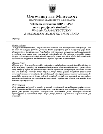 skrypt szkoleniowy - Wydział Farmaceutyczny z O. Analityki Medycznej