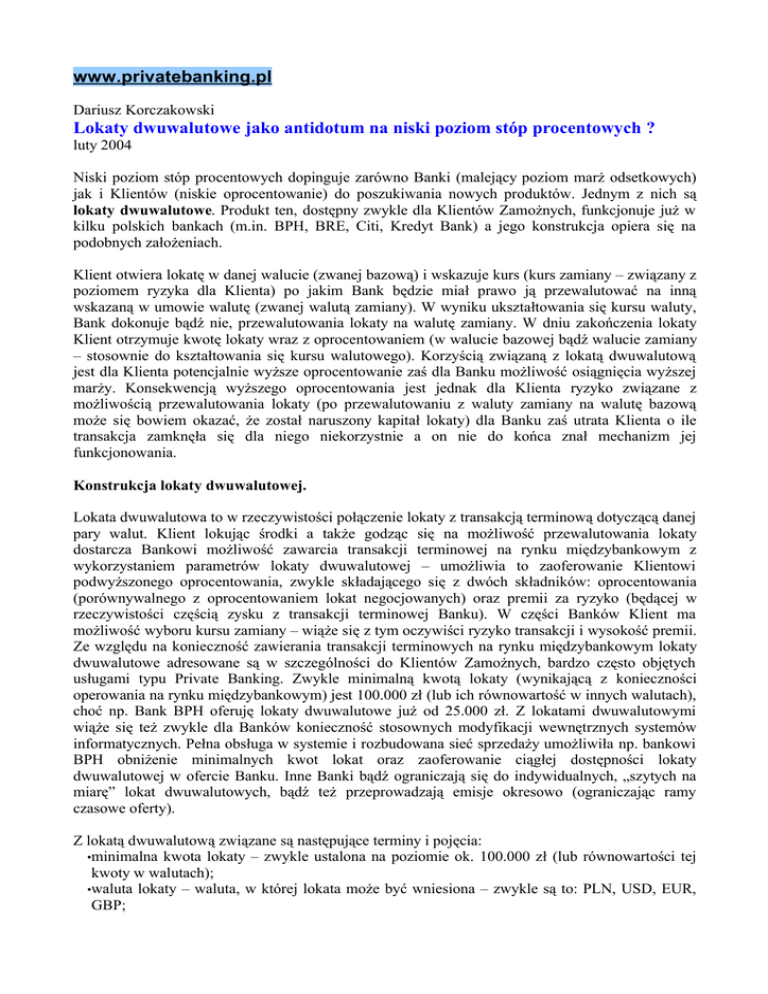 www.privatebanking.pl Lokaty dwuwalutowe jako antidotum na niski