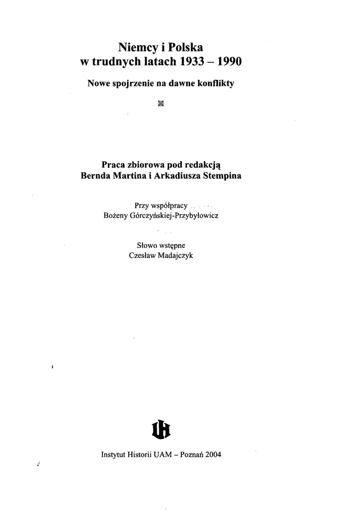 Niemcy i Polska w trudnych latach 1933 - 1990