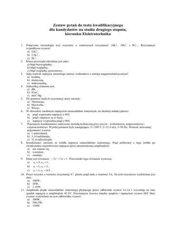 Zestaw pytań do testu kwalifikacyjnego dla kandydatów na studia