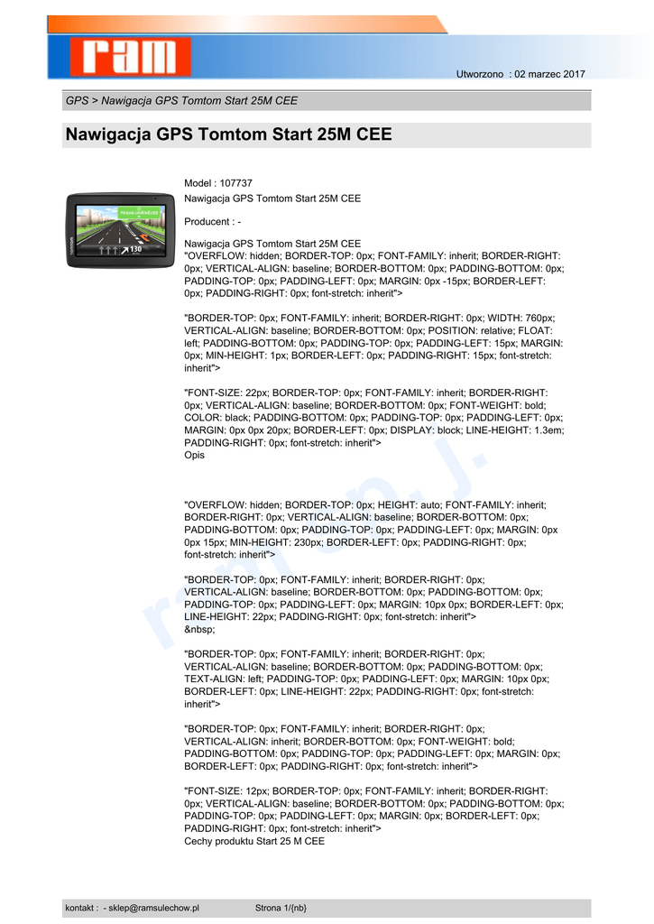 Utworzono : 02 marzec 2017 GPS > Nawigacja GPS Tomtom Start 25M CEE Nawigacja GPS Tomtom Start 25M CEE Model : 107737 Nawigacja GPS Tomtom Start 25M CEE Producent : Nawigacja GPS Tomtom Start 25M CEE "OVERFLOW: hidden; BORDER-TOP: 0px; FONT-FAMILY: inherit; BORDER-RIGHT: 0px; VERTICAL-ALIGN: baseline; BORDER-BOTTOM: 0px; PADDING-BOTTOM: 0px; PADDING-TOP: 0px; PADDING-LEFT: 0px; MARGIN: 0px -15px; BORDER-LEFT: 0px; PADDING-RIGHT: 0px; font-stretch: inherit"> "BORDER-TOP: 0px; FONT-FAMILY: inherit; BORDER-RIGHT: 0px; WIDTH: 760px; VERTICAL-ALIGN: baseline; BORDER-BOTTOM: 0px; POSITION: relative; FLOAT: left; PADDING-BOTTOM: 0px; PADDING-TOP: 0px; PADDING-LEFT: 15px; MARGIN: 0px; MIN-HEIGHT: 1px; BORDER-LEFT: 0px; PADDING-RIGHT: 15px; font-stretch: inherit"> "FONT-SIZE: 22px; BORDER-TOP: 0px; FONT-FAMILY: inherit; BORDER-RIGHT: 0px; VERTICAL-ALIGN: baseline; BORDER-BOTTOM: 0px; FONT-WEIGHT: bold; COLOR: black; PADDING-BOTTOM: 0px; PADDING-TOP: 0px; PADDING-LEFT: 0px; MARGIN: 0px 0px 20px; BORDER-LEFT: 0px; DISPLAY: block; LINE-HEIGHT: 1.3em; PADDING-RIGHT: 0px; font-stretch: inherit"> Opis . j . p s "OVERFLOW: hidden; BORDER-TOP: 0px; HEIGHT: auto; FONT-FAMILY: inherit; BORDER-RIGHT: 0px; VERTICAL-ALIGN: baseline; BORDER-BOTTOM: 0px; PADDING-BOTTOM: 0px; PADDING-TOP: 0px; PADDING-LEFT: 0px; MARGIN: 0px 0px 15px; MIN-HEIGHT: 230px; BORDER-LEFT: 0px; PADDING-RIGHT: 0px; font-stretch: inherit"> m a r "BORDER-TOP: 0px; FONT-FAMILY: inherit; BORDER-RIGHT: 0px; VERTICAL-ALIGN: baseline; BORDER-BOTTOM: 0px; PADDING-BOTTOM: 0px; PADDING-TOP: 0px; PADDING-LEFT: 0px; MARGIN: 10px 0px; BORDER-LEFT: 0px; LINE-HEIGHT: 22px; PADDING-RIGHT: 0px; font-stretch: inherit"> "BORDER-TOP: 0px; FONT-FAMILY: inherit; BORDER-RIGHT: 0px; VERTICAL-ALIGN: baseline; BORDER-BOTTOM: 0px; PADDING-BOTTOM: 0px; TEXT-ALIGN: left; PADDING-TOP: 0px; PADDING-LEFT: 0px; MARGIN: 10px 0px; BORDER-LEFT: 0px; LINE-HEIGHT: 22px; PADDING-RIGHT: 0px; font-stretch: inherit"> "BORDER-TOP: 0px; FONT-FAMILY: inherit; BORDER-RIGHT: 0px; VERTICAL-ALIGN: inherit; BORDER-BOTTOM: 0px; FONT-WEIGHT: bold; PADDING-BOTTOM: 0px; PADDING-TOP: 0px; PADDING-LEFT: 0px; MARGIN: 0px; BORDER-LEFT: 0px; PADDING-RIGHT: 0px; font-stretch: inherit"> "FONT-SIZE: 12px; BORDER-TOP: 0px; FONT-FAMILY: inherit; BORDER-RIGHT: 0px; VERTICAL-ALIGN: baseline; BORDER-BOTTOM: 0px; PADDING-BOTTOM: 0px; PADDING-TOP: 0px; PADDING-LEFT: 0px; MARGIN: 0px; BORDER-LEFT: 0px; PADDING-RIGHT: 0px; font-stretch: inherit"> Cechy produktu Start 25 M CEE kontakt : - [email protected] Strona 1/{nb} Utworzono : 02 marzec 2017 GPS > Nawigacja GPS Tomtom Start 25M CEE Nawigacja GPS Tomtom Start 25M CEE "BORDER-TOP: 0px; FONT-FAMILY: inherit; BORDER-RIGHT: 0px; VERTICAL-ALIGN: baseline; BORDER-BOTTOM: 0px; PADDING-BOTTOM: 0px; PADDING-TOP: 0px; PADDING-LEFT: 0px; MARGIN: 0px; BORDER-LEFT: 0px; PADDING-RIGHT: 0px; font-stretch: inherit"> 'LIST-STYLE-TYPE: none; BORDER-TOP: 0px; BORDER-RIGHT: 0px; VERTICAL-ALIGN: baseline; WHITE-SPACE: normal; WORD-SPACING: 0px; BORDER-BOTTOM: 0px; TEXT-TRANSFORM: none; COLOR: rgb(0,0,0); PADDING-BOTTOM: 0px; TEXT-ALIGN: left; PADDING-TOP: 0px; FONT: 14px/18px "Open Sans", sans-serif; PADDING-LEFT: 0px; MARGIN: 0px; BORDER-LEFT: 0px; WIDOWS: 1; LETTER-SPACING: normal; PADDING-RIGHT: 0px; BACKGROUND-COLOR: rgb(255,255,255); TEXT-INDENT: 0px; font-stretch: inherit; -webkit-text-stroke-width: 0px'> "BORDER-TOP: 0px; FONT-FAMILY: inherit; BORDER-RIGHT: 0px; VERTICAL-ALIGN: baseline; BORDER-BOTTOM: 0px; PADDING-BOTTOM: 0px; PADDING-TOP: 0px; PADDING-LEFT: 0px; MARGIN: 0px; BORDER-LEFT: 0px; PADDING-RIGHT: 0px; font-stretch: inherit"> . j . "FONT-SIZE: 15px; BORDER-TOP: 0px; FONT-FAMILY: inherit; BORDER-RIGHT: 0px; VERTICAL-ALIGN: baseline; BORDER-BOTTOM: 0px; FONT-WEIGHT: bold; COLOR: black; PADDING-BOTTOM: 0px; PADDING-TOP: 0px; PADDING-LEFT: 0px; MARGIN: 0px; BORDER-LEFT: 0px; DISPLAY: block; LINE-HEIGHT: 1.3em; PADDING-RIGHT: 0px; font-stretch: inherit"> p s "FONT-SIZE: 12px; BORDER-TOP: 0px; FONT-FAMILY: inherit; BORDER-RIGHT: 0px; VERTICAL-ALIGN: baseline; BORDER-BOTTOM: 0px; PADDING-BOTTOM: 0px; PADDING-TOP: 0px; PADDING-LEFT: 0px; MARGIN: 0px; BORDER-LEFT: 0px; PADDING-RIGHT: 0px; font-stretch: inherit"> BEZPŁATNE dożywotnie mapy m a r "BORDER-TOP: 0px; FONT-FAMILY: inherit; BORDER-RIGHT: 0px; VERTICAL-ALIGN: baseline; BORDER-BOTTOM: 0px; PADDING-BOTTOM: 0px; PADDING-TOP: 0px; PADDING-LEFT: 0px; MARGIN: 10px 0px; BORDER-LEFT: 0px; LINE-HEIGHT: 22px; PADDING-RIGHT: 0px; font-stretch: inherit"> "FONT-SIZE: 12px; BORDER-TOP: 0px; FONT-FAMILY: inherit; BORDER-RIGHT: 0px; VERTICAL-ALIGN: baseline; BORDER-BOTTOM: 0px; PADDING-BOTTOM: 0px; PADDING-TOP: 0px; PADDING-LEFT: 0px; MARGIN: 0px; BORDER-LEFT: 0px; PADDING-RIGHT: 0px; font-stretch: inherit"> Zawsze korzystaj z najnowszych map. Posiadając "BORDER-TOP: 0px; FONT-FAMILY: inherit; BORDER-RIGHT: 0px; VERTICAL-ALIGN: inherit; BORDER-BOTTOM: 0px; FONT-WEIGHT: bold; PADDING-BOTTOM: 0px; PADDING-TOP: 0px; PADDING-LEFT: 0px; MARGIN: 0px; BORDER-LEFT: 0px; PADDING-RIGHT: 0px; font-stretch: inherit"> BEZPŁATNE dożywotnie mapy, jeszcze szybciej dotrzesz do celu podróży. Przez cały okres eksploatacji produktu możesz co roku pobierać 4 lub więcej pełnych aktualizacji mapy zainstalowanej na Twoim urządzeniu. Będziesz otrzymywać wszystkie aktualizacje sieci dróg, adresów i Użytecznych Miejsc. "BORDER-TOP: 0px; FONT-FAMILY: inherit; BORDER-RIGHT: 0px; VERTICAL-ALIGN: baseline; BORDER-BOTTOM: 0px; PADDING-BOTTOM: 0px; kontakt : - [email protected] Strona 2/{nb} Utworzono : 02 marzec 2017 GPS > Nawigacja GPS Tomtom Start 25M CEE Nawigacja GPS Tomtom Start 25M CEE PADDING-TOP: 0px; PADDING-LEFT: 0px; MARGIN: 0px; BORDER-LEFT: 0px; PADDING-RIGHT: 0px; font-stretch: inherit"> "FONT-SIZE: 15px; BORDER-TOP: 0px; FONT-FAMILY: inherit; BORDER-RIGHT: 0px; VERTICAL-ALIGN: baseline; BORDER-BOTTOM: 0px; FONT-WEIGHT: bold; COLOR: black; PADDING-BOTTOM: 0px; PADDING-TOP: 0px; PADDING-LEFT: 0px; MARGIN: 0px; BORDER-LEFT: 