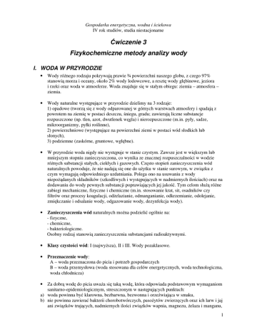Ćwiczenie 3 Fizykochemiczne metody analizy wody