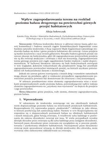 Budownictwo i Architektura 13(1) (2014) 103-112 Wpływ zagospodarowania terenu na rozkład poziomu hałasu drogowego na powierzchni górnych przejść habitatowych Alicja Sołowczuk Katedra Dróg, Mostów i Materiałów Budowlanych, Zachodniopomorskiego Uniwersytetu Technologicznego w Szczecinie, e–mail: [email protected] Streszczenie: Ochrona środowiska dotyczy w głównej mierze fauny, gdyż rozwój komunikacji i budowa nowych ciągów komunikacyjnych fragmentuje coraz bardziej naturalne środowisko. Chcąc naprawić błędy fragmentacji naturalnego środowiska buduje się dolne i górne przejścia habitatowe dla zwierząt. Górne przejścia są bardzo kosztowne z racji swoich gabarytów. Ponadto budowa górnych przejść nie zawsze okazuje się funkcjonalna, gdyż źle zagospodarowane powierzchnie przejścia nie są dla zwierząt atrakcyjne i zwierzęta z nich nie korzystają. Zagospodarowanie terenu górnego przejścia jest ciągle zagadnieniem bardzo trudnym i nadal eksperymentalnym. W fachowej literaturze odczuwa się brak funkcjonalnych rozwiązań w tym względzie. Jedynymi wskazówkami dla projektantów mogą być przykłady zagospodarowania powierzchni istniejących przejść, na których uzyskano potwierdzenie ich funkcjonalności danymi z monitoringu. Jednak nie zawsze gotowe rozwiązania z innych dróg i warunków naturalnych mogą okazać się przydatne, gdyż w większości przypadków zagospodarowanie powierzchni przejścia powinno być dostosowane do zwierzyny z niej korzystającej. W referacie przedstawiono różne elementy zagospodarowania wraz z wynikami przeprowadzonych analiz poziomu hałasu, potwierdzającymi wpływ rodzaju elementu zagospodarowania na „uzyskany stan wyciszenia” na dojściu do przejścia i jego powierzchni. Słowa kluczowe: górne przejścia, wały ziemne, elementy zagospodarowania, poziom hałasu. 1. Wprowadzenie W odniesieniu do środowiska zwierzęcego nie ma określonych żadnych norm dopuszczalnego poziomu hałasu na stosowanych przejściach habitatowych. Rozporządzenie [1], wprowadza pojęcie „środowisko” i definiuje je, jako obszar, w którym przebywają lub zamieszkują ludzie. Niestety w w/w Rozporządzeniu nie wspomina się o dopuszczalnych poziomach hałasu na obiektach habitatowych i innych miejscach, gdzie bytują zwierzęta. A wrażliwość ucha ludzkiego w porównaniu do zakresu słyszalności zwierząt jest inna. W wielu przypadkach wysokie dźwięki słyszalne przez zwierzęta są dla ucha ludzkiego poza zasięgiem słyszalności. Szerszych pasm słyszalności przez zwierzęta nie uwzględnia się w procesie projektowania i użytkowania obiektów habitatowych. Nieznajomość pasm słyszalności zwierząt może spowodować sytuację, że dźwięk niesłyszalny dla człowieka, może wywierać silne niekorzystne oddziaływanie na zwierzęta. 104 Alicja Sołowczuk Warto w tym miejscu podkreślić, że brakuje w literaturze potwierdzonych wyników badań wpływu hałasu na różne gatunki zwierząt, żyjących w danym środowisku. Stosowanie w stosunku do przejść habitatowych wytycznych sformułowanych w odniesieniu do miejsc zamieszkałych przez ludzi może budzić szereg wątpliwości. Dodatkowe wątpliwości może także stwarzać sama definicja hałasu skorelowana ze skorygowaną krzywą korekcyjną „A”, gdyż progi oraz pasma słyszalności ludzi i zwierząt różnią się od siebie i to znacznie. Na razie jednak przy dopuszczeniu braku odpowiednich wytycznych w badaniach stosuje się krzywą korekcyjną „A”. 2. Założenia badawcze odnośnie badań poziomów hałasu W przytoczonych badaniach wykorzystano miernik poziomu dźwięku klasy 1 SVAN 945A firmy SVANTEK, zakupiony ze środków uzyskanych w ramach grantu promotorskiego Ministerstwa Nauki i Szkolnictwa Wyższego. Przyrząd ten spełnia wymagania norm krajowych i międzynarodowych (PN-79/T-06460, IEC651, IEC 804, IEC 61672-1) w odniesieniu do mierników poziomu dźwięku klasy 1 [1]. Miernik jest przeznaczony do pomiarów akustycznych w pomieszczeniach oraz na zewnątrz, dzięki małym rozmiarom jest bardzo poręczny i łatwy w użyciu. Zastosowano w nim cyfrowy procesor sygnałowy, który umożliwia wykonanie pomiarów w pasmach oktawowych i tercjowych wraz z analizą statystyczną [2]. W skład zestawu pomiarowego wchodzi przedwzmacniacz mikrofonowy SVANTEK SV11 oraz mikrofon G.R.A.S. 40 AN, który podczas pomiarów wykonywanych na zewnątrz okrywa się osłoną przeciwwietrzną SVANTEK SA 22. Zgodnie z instrukcję obsługi miernik przed każdym pomiarem należy kalibrować za pomocą kalibratora Sonopan KA – 50. W mierniku zakres pomiaru wynosi 22 dB(A) RMS ÷ 140 dB(A) Peak. W czasie pomiaru jest możliwość niezależnego ustawienia trzech profili, które mierzą poziom dźwięku z innymi filtrami i różną stałą czasową zdefiniowaną przez użytkownika. [3] W każdym profilu istnieje możliwość pomiaru z innym filtrem korekcyjnym. Wszystkie wyniki pomiarów zostały odczytane przy pomocy programu SvanPC ++ w wersji 1.1.8, udostępnionej przez producenta miernika na jego stronie internetowej [4]. Miernik dźwięku umożliwia także określenie wartości poziomów statystycznych wykonywanych pomiarów [1]. Podstawowe parametry SVAN 945A [1]: − zakres częstotliwości mierzonego ciśnienia akustycznego: 1 Hz – 20000 Hz, − zakres pomiarowy: 24 dB – 139 dB, − błąd podstawowy pomiaru poziomu ciśnienia akustycznego: < 0,7 dB, − wielkości mierzone: LEQ, LMAX, LMIN, PEAK, SPL, SEL, L. Hałas generowany przez ruch drogowy jest hałasem zmiennym w czasie. W przybliżeniu można stwierdzić, że jest to średnia wartość poziomu dźwięku zmierzonego w czasie trwania danego pomiaru. W celu odzwierciedlenia charakterystyki, którą posiada ludzkie ucho, podczas pomiarów z reguły wykorzystuje się krzywą korekcyjną A. Parametrem, który dobrze charakteryzuje odbiór fali dźwiękowej przez ludzkie ucho jest równoważny (ekwiwalentn