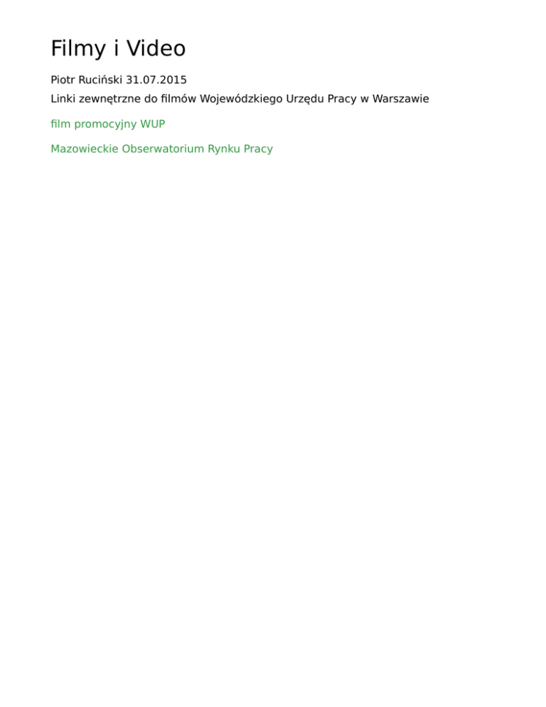 Filmy i Video Piotr Ruciński 31.07.2015 Linki zewnętrzne do filmów Wojewódzkiego Urzędu Pracy w Warszawie film promocyjny WUP Mazowieckie Obserwatorium Rynku Pracy