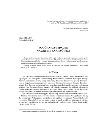 Dzieje górnictwa – element europejskiego dziedzictwa kultury, 5 pod red. P.P. Zagożdżona i M. Madziarza, Wrocław 2013 Zrąb Zakrzówka, eksploatacja kopalin, geoturystyka Edyta SERMET1 Gabriela ROLKA1 POGÓRNICZY SPADEK NA ZRĘBIE ZAKRZÓWKA Tereny poeksploatacyjne Zakrzówka (SW część Krakowa) posiadają wyjątkowe walory geologiczne, krajobrazowe, przyrodnicze i historyczne. Eksploatacja wapieni jurajskich była tu prowadzona od średniowiecza do połowy XX wieku. Zagospodarowanie starych kamieniołomów ma ogromne znaczenie dla ochrony dziedzictwa geologicznego. Artykuł prezentuje formy wykorzystania tych terenów dla edukacji geologicznej i historycznej, geoturystyki i rekreacji. 1. Wstęp Zrąb Zakrzówka to niewielka struktura tektoniczna (około 1 km2), na obszarze której znajdują się nieczynne kamieniołomy Krakowskich Zakładów Sodowych Solvay: Zakrzówek (obecnie zalany wodą, nazywany Zalewem Zakrzówek; rys. 1), kamieniołom na Kapelance, stary, częściowo zalesiony kamieniołom zwany Skałami Twardowskiego, łom Bergera, pomniejsze łomy oraz liczne atrakcje geologiczne m. in. krasowe jaskinie (np. Twardowskiego, Jasna), jak również pamiątki fortyfikacji obronnych. Obszar położony między Zalewem a korytem Wisły tworzy park „Skały Twardowskiego” i wchodzi w skład Bielańsko-Tynieckiego Parku Krajobrazowego. Zrąb Zakrzówka administracyjnie usytuowany jest na terenie miasta Krakowa, około 4 km na południowy-zachód w linii prostej od centrum miasta. Geograficznie należy do północnego Podkarpacia, jest jednym ze zrębów, tworzących Pomost Krakowski (zwężenie Wisły, której koryto wykorzystuje tu strefę wąskiego, tektonicznie obniżonego rowu), znajdujący się we wschodniej części makroregionu Bramy Krakowskiej (Słomka i in., 2006). 1 AGH Akademia Górniczo-Hutnicza, WGGiOŚ, al. Mickiewicza 30, 30-059 Kraków. 330 Edyta SERMET, Gabriela ROLKA Rys. 1. Zrąb Zakrzówka, widok od strony wschodniej (www.nurkomania.pl) Fig. 1. The Zakrzówek Horst, view from E (www.nurkomania.pl) 2. Budowa geologiczna obszaru Zrębu Zrąb Zakrzówka to jedna z siedmiu struktur zrębowych w obrębie Krakowa. Utworzony został w wyniku trzeciorzędowych, mioceńskich ruchów tektonicznych. Budują go (rys. 2). wapienie oksfordu (tzw. jury białej) utworzone w płytkim, ciepłym morzu epikontynentalnym. Lokalnie występują tu płaty wapieni kredowych, piaszczyste wapienie turonu, a także margle senonu. Rozdzielające zręby rowy tektoniczne wypełnione są utworami miocenu i przykryte osadami czwartorzędowymi (piaski, żwiry, iły, aluwia, deluwia i lessy) Wśród utworów czwartorzędowych występują aluwia, które posiadają bezpośrednią więź hydrauliczną z Wisłą (Motyka i in., 2003). Wapienie oksfordu o miąższości około 230 m wykształcone są w postaci trzech odmian facjalnych: wapieni płytowych, dominujących na obszarze zrębu wapieni uławiconych (grubo- i cienkoławicowych) oraz występujących podrzędnie twardych, zwięzłych wapieni skalistych i kredowatych. Wapienie skaliste przechodzą w wapienie uławicone zawierające liczne, ułożone w horyzontach równoległych do uławicenia, konkrecje krzemionkowe. Wśród wapieni uławiconych występują wapienie kredowate z charakterystycznymi bezładnie ułożonymi bułami krzemiennymi. We wschodniej części zrębu zachowały, się w postaci płatów pokrywających wapienie górnojurajskie, piaszczyste wapienie turonu. Zawierają one liczne ziarna kwarcu, które tworzą na powierzchni charakterystyczne „wciski” (powstałe w warunkach kompakcji), widoczne są również ślady drążenia przez jeżowce. Pogórniczy spadek na zrębie Zakrzówka 331 W stropowej części kamieniołomu Zakrzówek występują zielonkawe margle senońskie, oraz osady miocenu. Obserwowane osady mioceńskie są pochodzenia lądowego (caliche – węglanowa gleba kopalna, widoczna wyraźna strefowość) i morskiego (tłuste, szaro-zielonkawe iły warstw skawińskich – pozostałość morza badeńskiego) (Matyszkiewicz, 1993). Rys. 2 Mapa geologiczna Zrębu Zakrzówka (Motyka i in., 2003) Fig. 2. The geological map of Zakrzówek Hors (after Motyka et al., 2003) 3. Aktualny stan zagospodarowania Zakrzówka Rejon Zakrzówka, nazywany przez krakowian Skałami Twardowskiego, to obszar bardzo malowniczy, urozmaicony, „naturalny”. W morfologii zaznaczają się głównie formy tektoniczne (zręby i rowy) oraz towarzyszące im liczne formy krasu powierzch- 332 Edyta SERMET, Gabriela ROLKA niowego (leje, żłobki, żebra) i podziemnego – głównie jaskinie (np. Twardowskiego, Jasna, Niska). Nieodłącznym elementem krajobrazu Zrębu Zakrzówka są wyrobiska powstałe po eksploatacji wapieni jurajskich, choć często nie kojarzone z kamieniołomami. Największy z łomów to Zakrzówek (najbardziej rozległy powyrobiskowy akwen na terenie Krakowa), a ponadto kamieniołom Kapelanka, łom Bergera, łom Skałki Twardowskiego oraz szereg drobnych starych wyrobisk wzdłuż brzegu Wisły. Głębokość a równocześnie doskonała widoczność (15–23 m pod poziomem tafli wody) Zalewu Zakrzówek powodują, że akwen ten uważany jest za jedno z ciekawszych i najpiękniejszych nurkowisk w Polsce. Wokół zalewu i wyrobisk poprowadzone są liczne dróżki spacerowe, trasy rowerowe, biegowe oraz utworzona niedawno ścieżka edukacyjna. Strome, wysokie ściany skalne w nieczynnych wyrobiskach stanowią doskonałe miejsce do uprawiania wspinaczki skałkowej. Niektóre z nich otrzymały już nazwy np. Baba Jaga, Sadystówka, Problemówka. Niestety na obszarze Zakrzówka znajdują się także miejsca zaniedbane, zniszczone, z dzikimi wysypiskami śmieci. 4. Jak powstały kamieniołomy? Pierwsze wzmianki o Zakrzówku, wówczas jednej z podkrakowskich osad, pochodzą z połowy XIII wieku. Wydobycie wapieni jurajskich skalistych, grubo- i cienkoławicowych oraz płytowych prowadzono tu od kilkuset lat (Przegon, 2004; Tyrowicz, 19